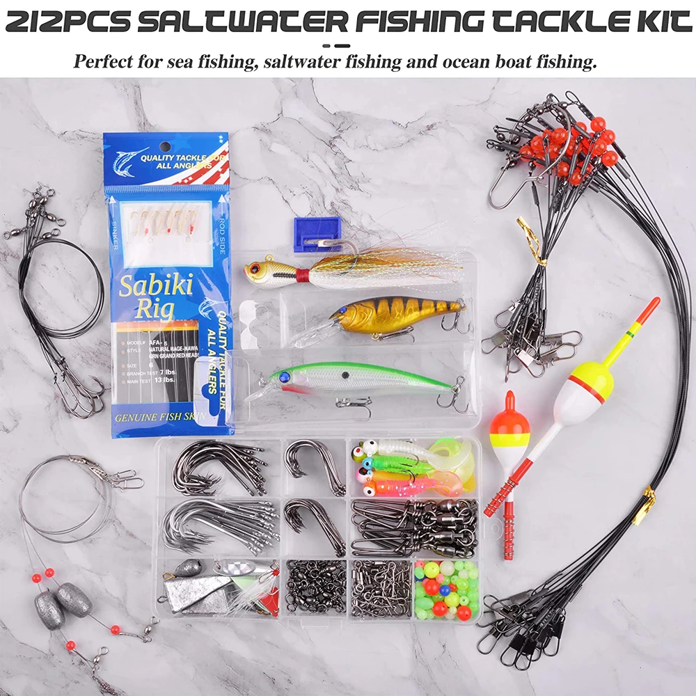 Kit de Señuelos de Pesca de agua salada de 212 piezas, aparejos de cebo de pesca, señuelos de pececillo, eslabones giratorios, juego de flotadores, equipos de pesca de Surf