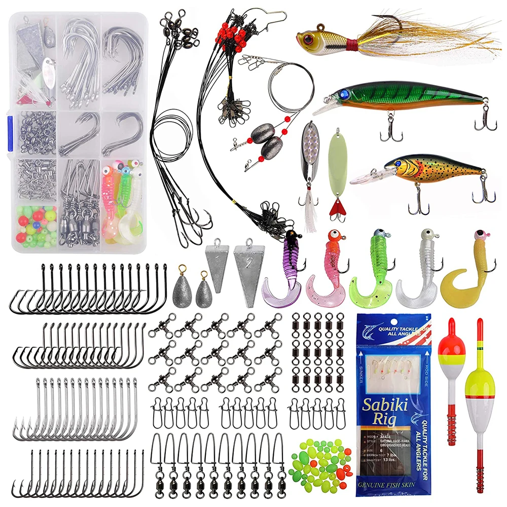 Cantidad: 212 piezas Modelo: kit de pesca con señuelos Paquete: caja de plástico Colores: aleatorios Nota: Algunos colores no se muestran en la foto, es aleatorio. Gracias