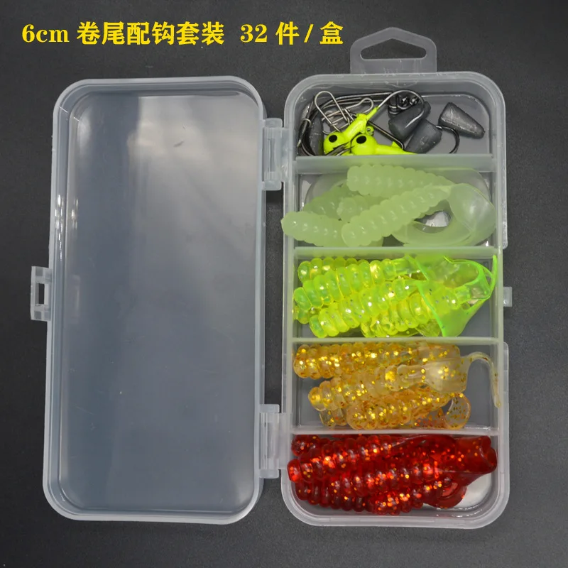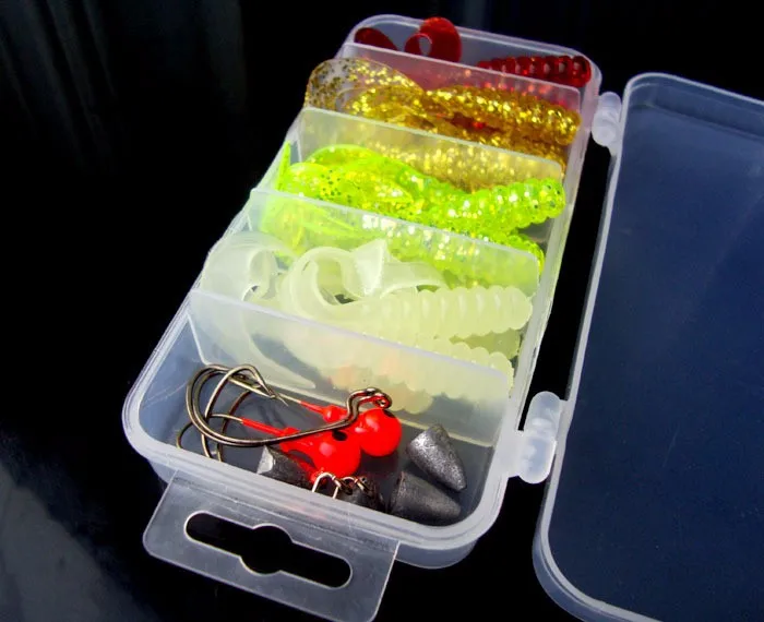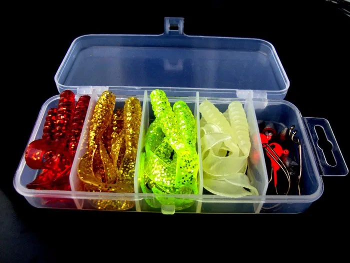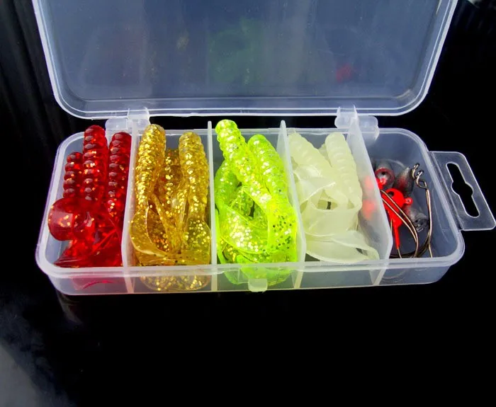 Kit de señuelos de pesca, cebo de gusano suave, anzuelo con cabeza de gusano, peso, plomo, cola única, Grub, traje de 31 piezas
