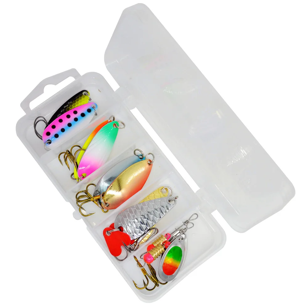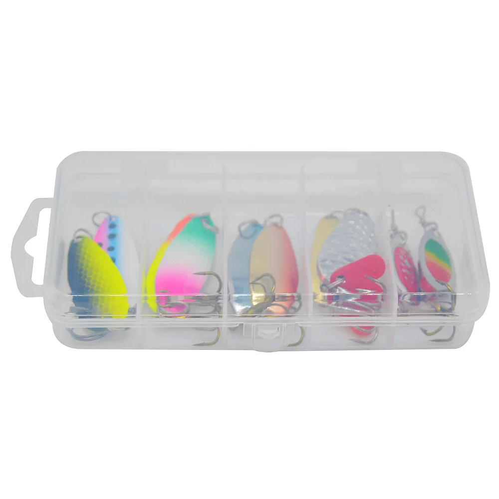 Kit de Señuelos de Pesca, cucharas coloridas, lentejuelas de rotación, señuelos artificiales, cebo giratorio, plantillas de Metal, lote de 10 piezas en oferta