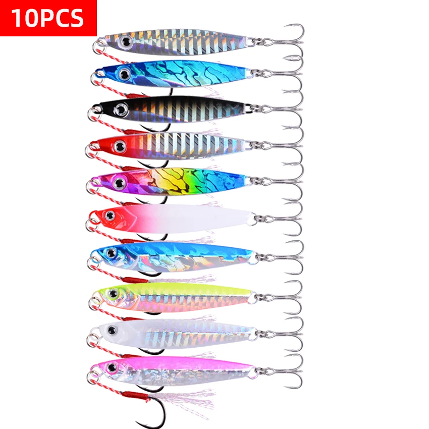 Kit de Señuelos de Pesca en agua salada, cuchara de fundición a tierra, 10 piezas, 7G, 10G, 17G, 21G, 30G, 40G, 60G