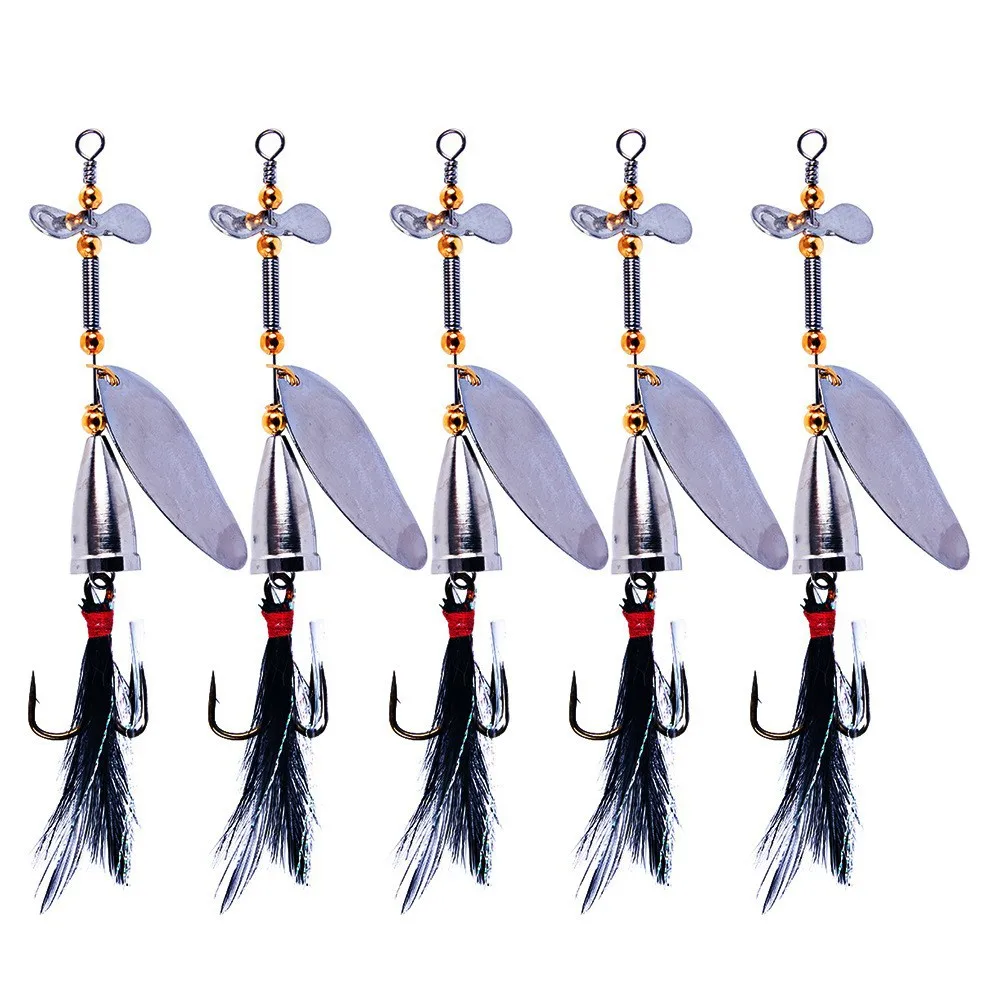 Kit de Señuelos de Pesca giratorios de 5 piezas, cuchara de lentejuelas de Metal, cebo duro, Wobblers, aparejos de pesca, herramienta de anzuelo de lentejuelas