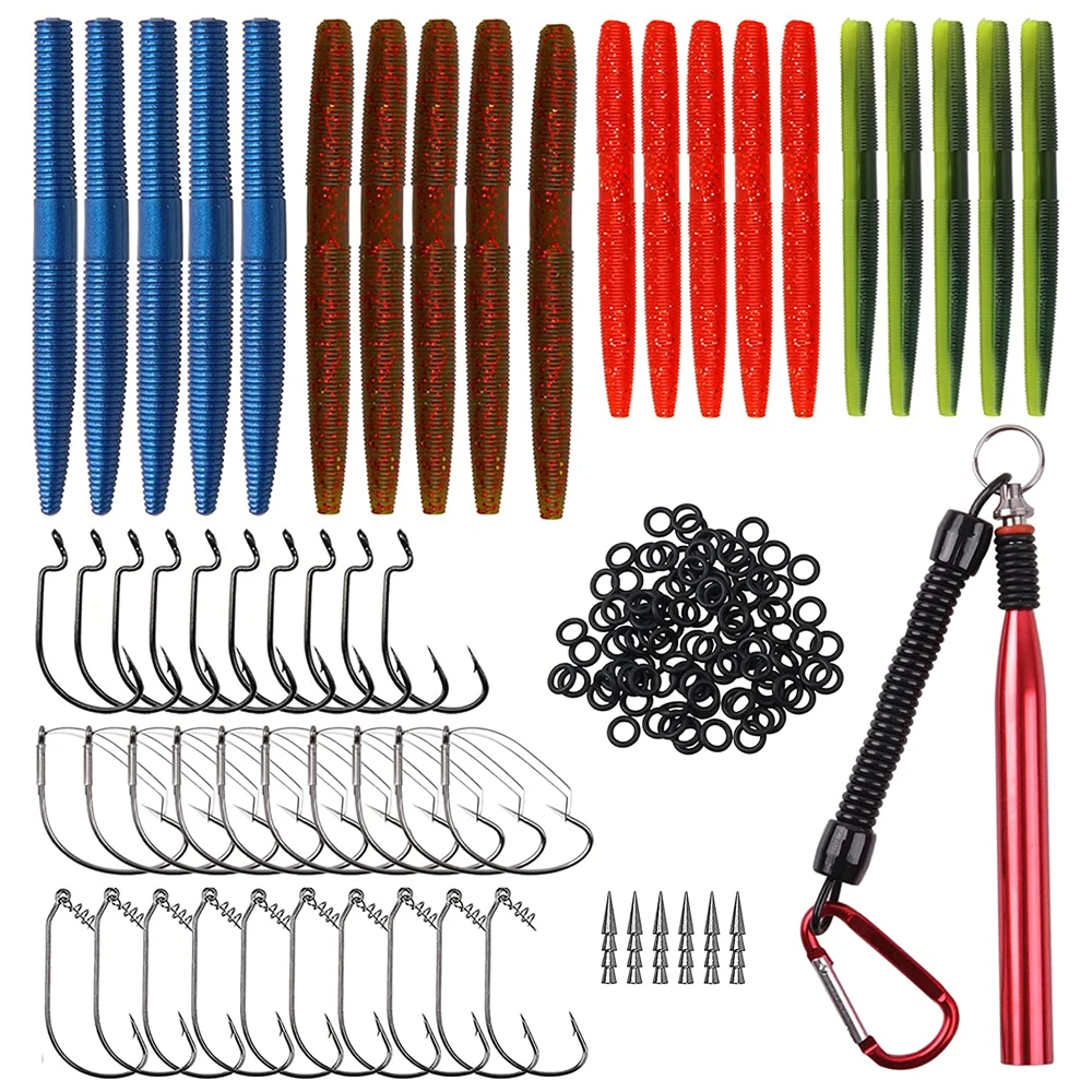 Kit de Señuelos de Pesca de gusano loco, 116 unidades, cebos de gusano suave, Kit de herramientas de pesca, juntas tóricas, truchas, lubinas, Jigging, kit de aparejos de señuelo
