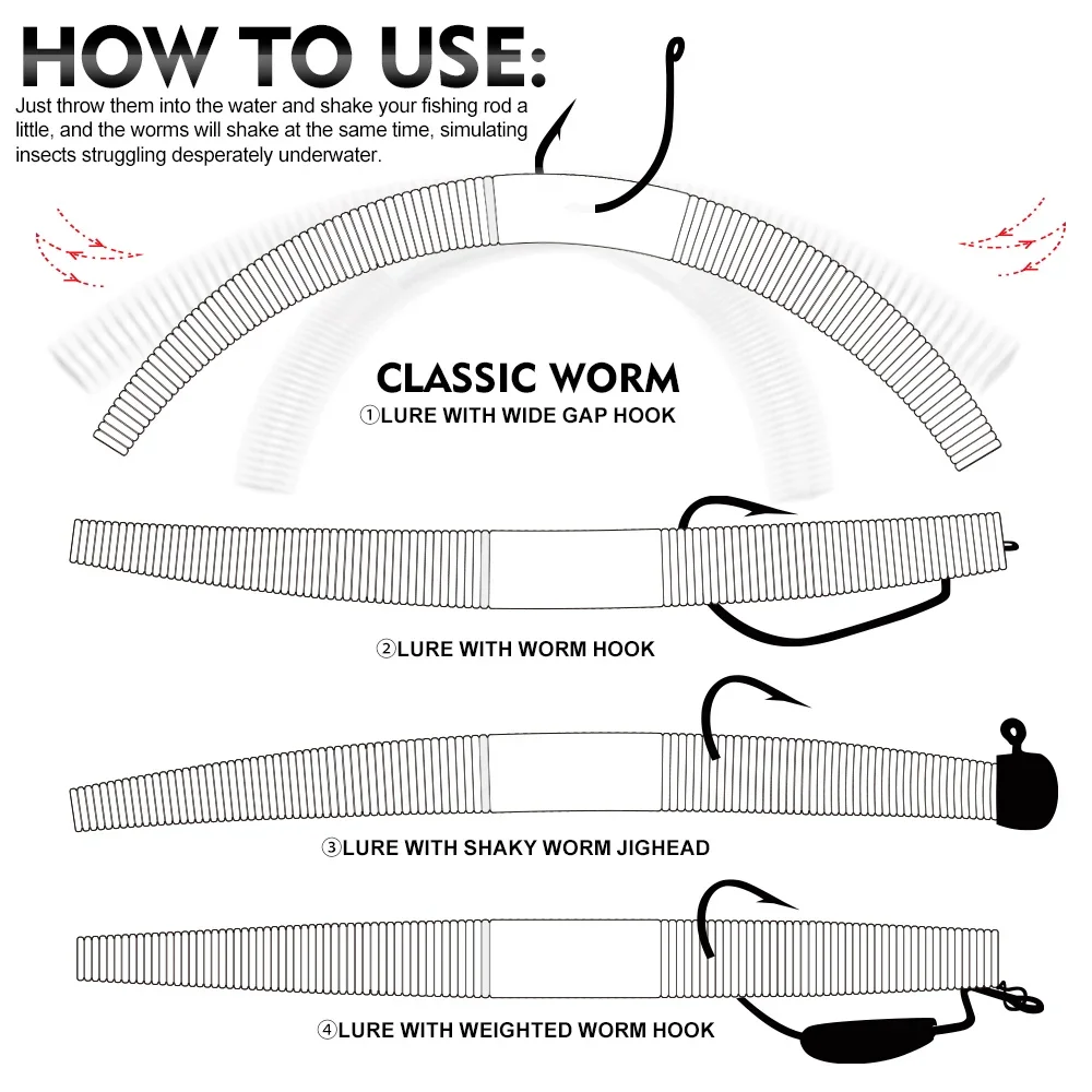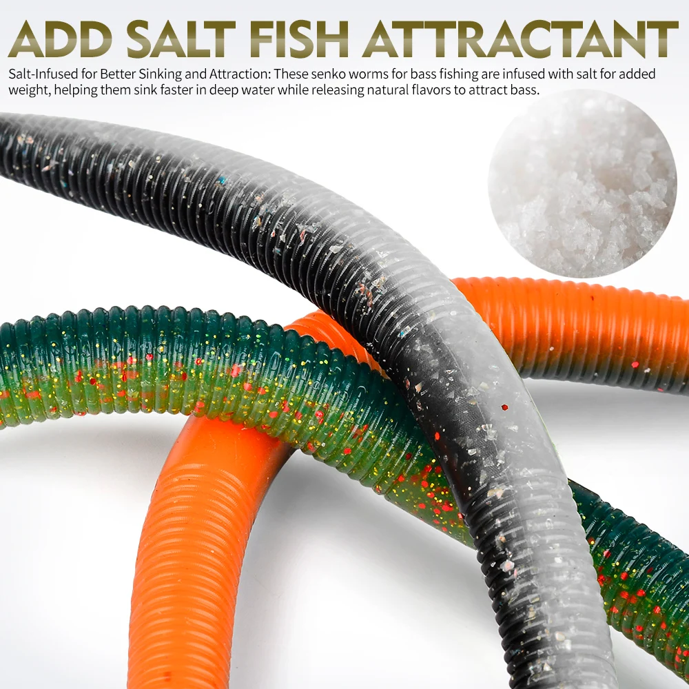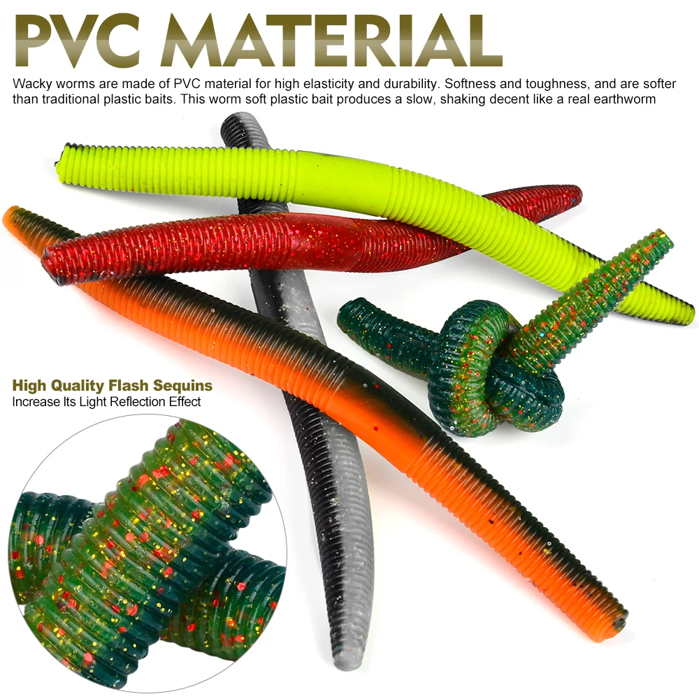 Kit de Señuelos de Pesca de gusanos, cebo de plástico blando, gusano loco, para lubina, trucha y otros peces de agua dulce/salada, 10 Uds.