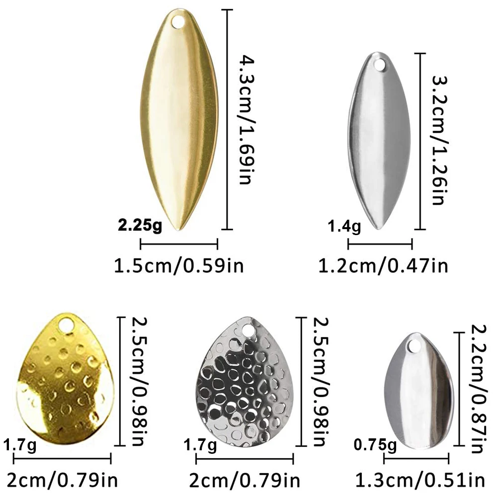 40 piezas Easy Spin Colorado Willow Spinner cuchillas cuchara señuelo Kit para Spinner cebo Buzzbait Bass Jig señuelo pesca aparejos