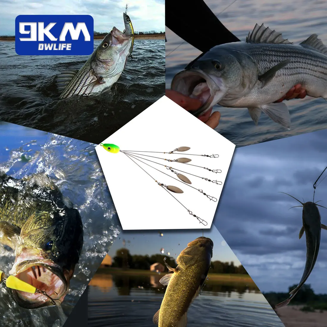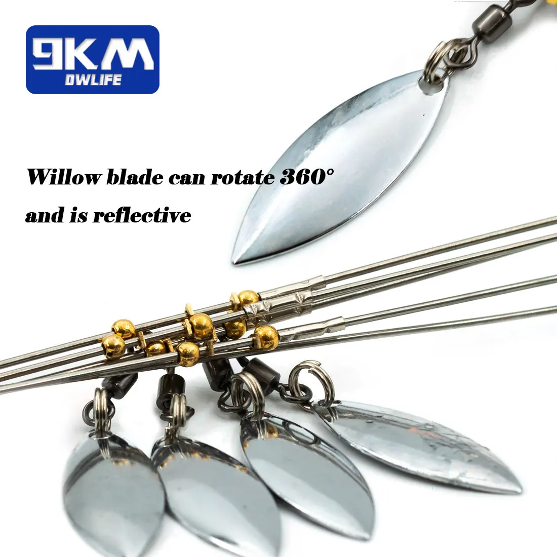 【Buen rendimiento】: hecho con anillo giratorio de alta calidad, la cuchara puede girar libremente para atrapar las lubinas de más de 10 libras; los rodamientos de bolas de funcionamiento suave y la horquilla ayudan a que las 4 hojas de sauce brillantes giren libremente para obtener más brillo y las vibraciones atraigan a los peces objetivo desde la distancia.