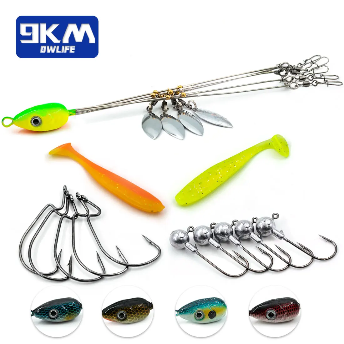【Paquete de valor】: 1 aparejo Alabama de 1/2 "+ 5 puntas de aparejos de 5g + 10 señuelos blandos T-Tail de 2" + 5 ganchos EWG de 3 ". 2". 3 ". Ideal para agua dulce y salada.
