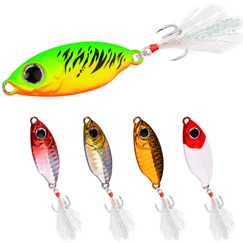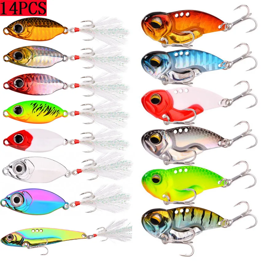 Kit de Señuelos de Pesca de Metal fundido, 14 piezas, Jigging de fundición a tierra, señuelo de pesca de lubina, aparejos de cebo Artificial