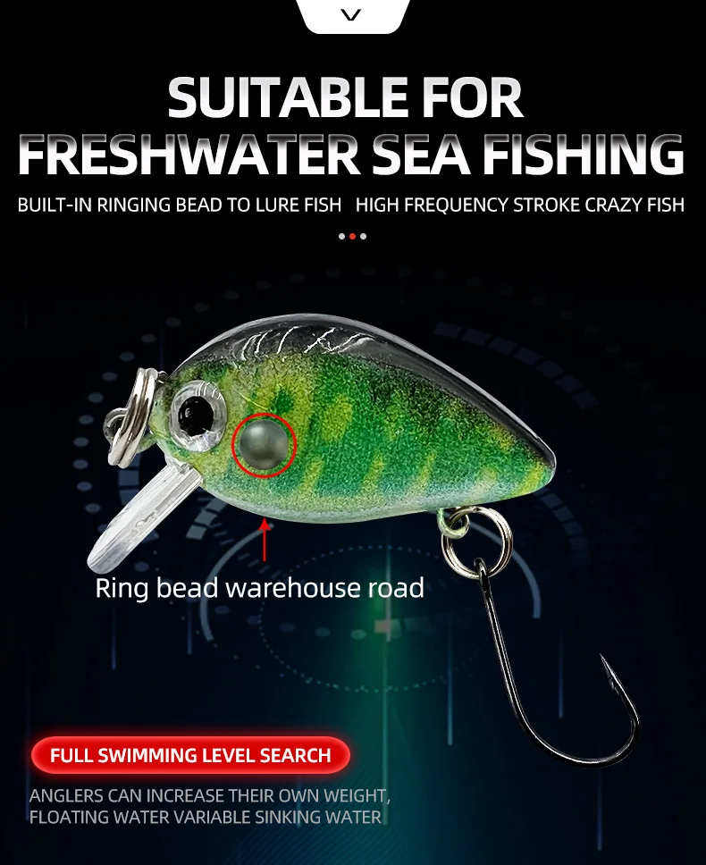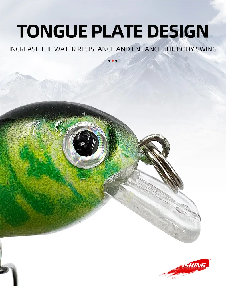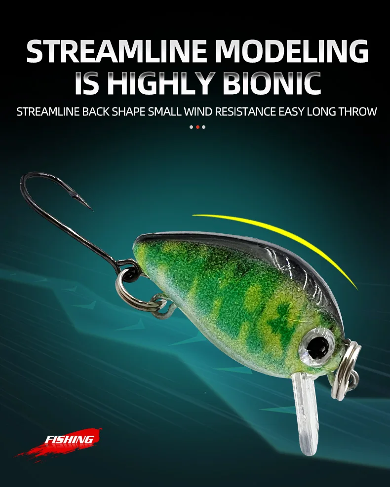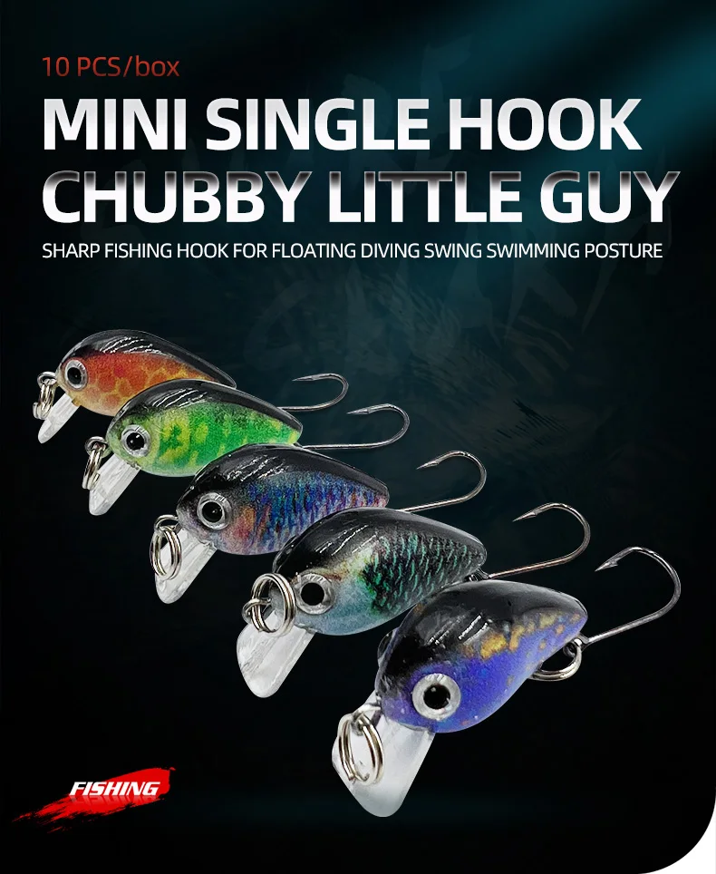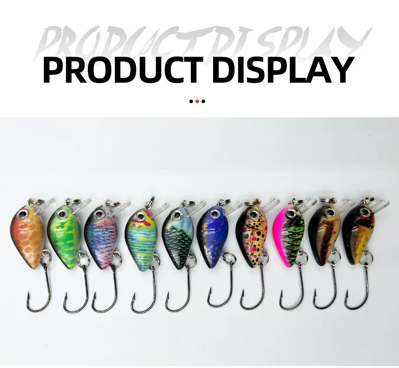 【Empaquete】:Obtendrá 10 señuelos Mini Crankbait en una caja, la longitud de cada señuelo de pesca es de 2,8 cm/1,1 pulgadas, el peso es de 1,5g.
