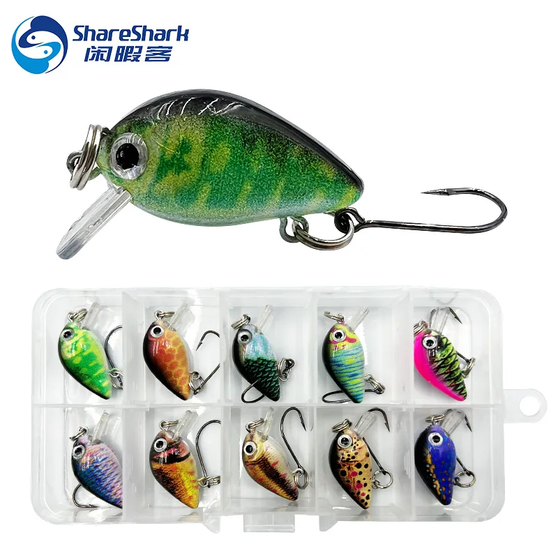 Kits de Señuelos de Pesca Mini Crankbait de 10, cebos duros Swimbait, señuelos de manivela Wobble Minnow para pesca de trucha lubina