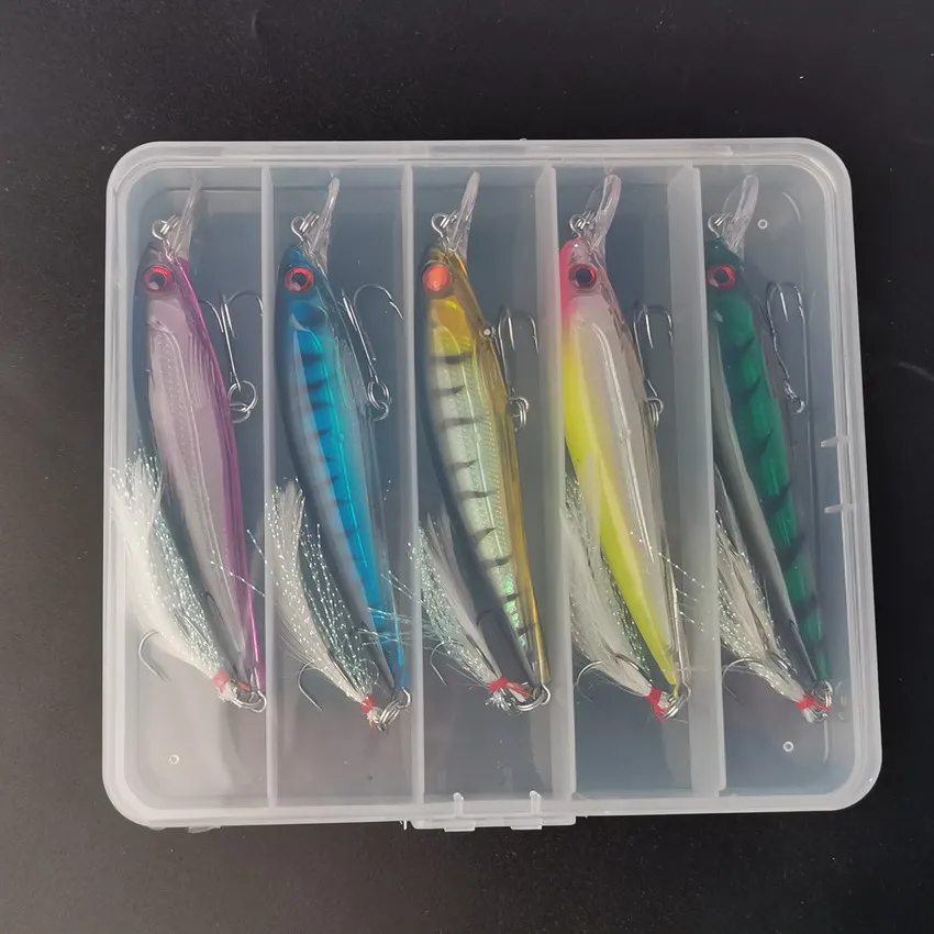 Lista de embalaje: 5 Señuelos de Pesca de 1 caja de 2 o 2 unidades.(El señuelo es de 2 tamaños, es de diferente tamaño, por favor, compruébelo cuando haga el pedido)