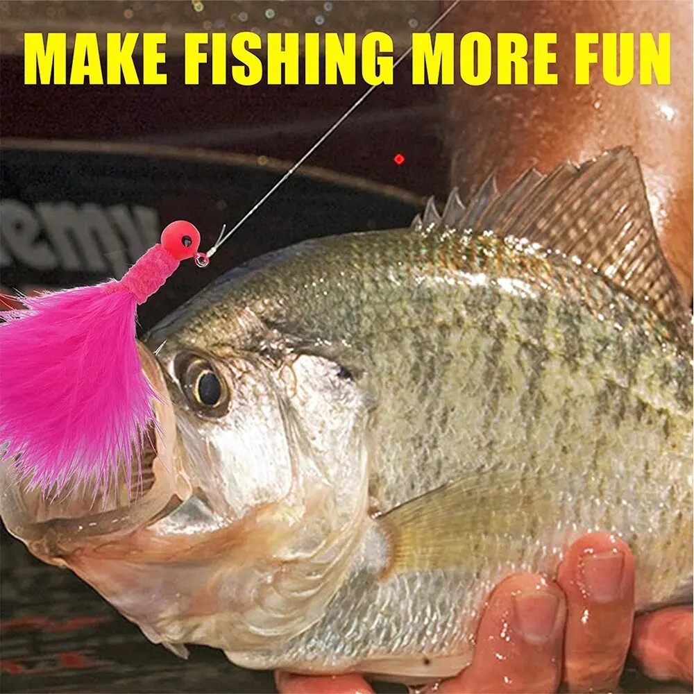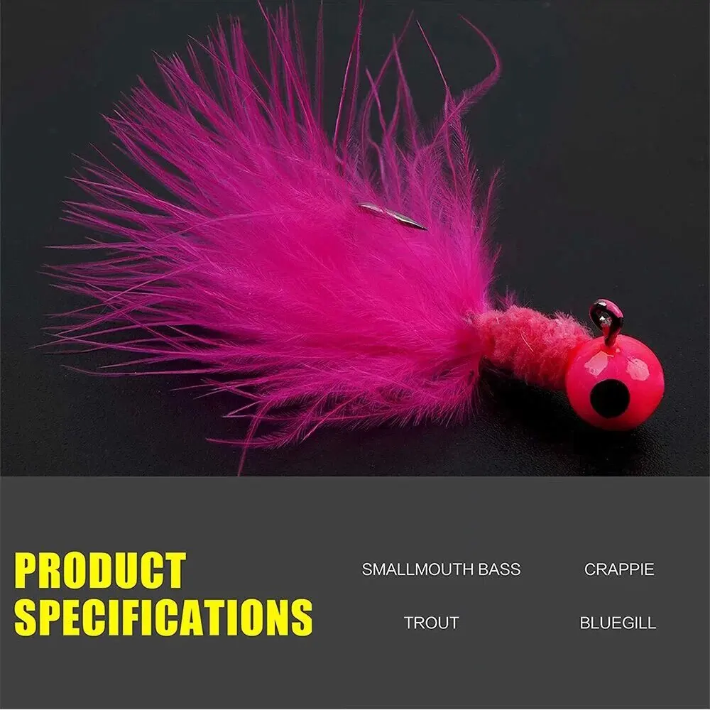 1. Hecho de ganchos de acero inoxidable, cabezas de plomo y plumas, la cantidad es buena.