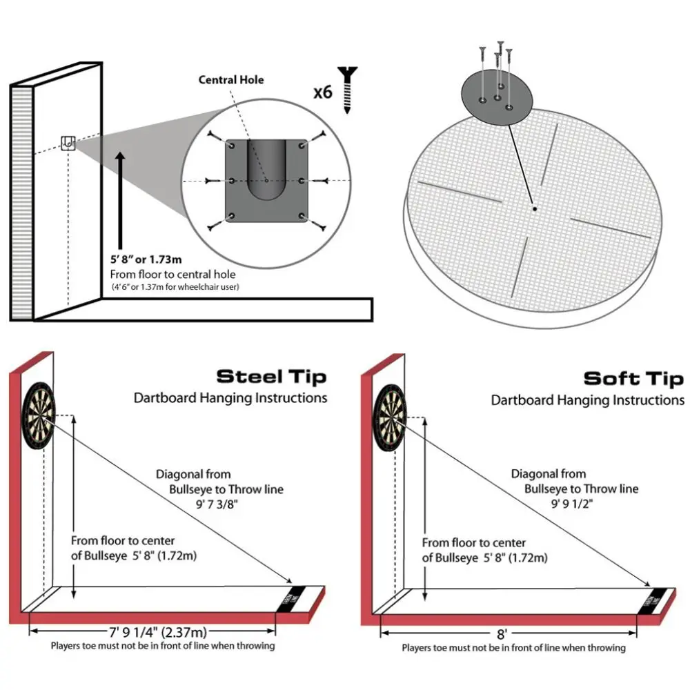 Package includes:1 Set Dartboard Mounting Bracket Kit Elevates your setups with the versatile mounting bracket, a must have addition for any enthusiast seeking convenience and peace of mind.