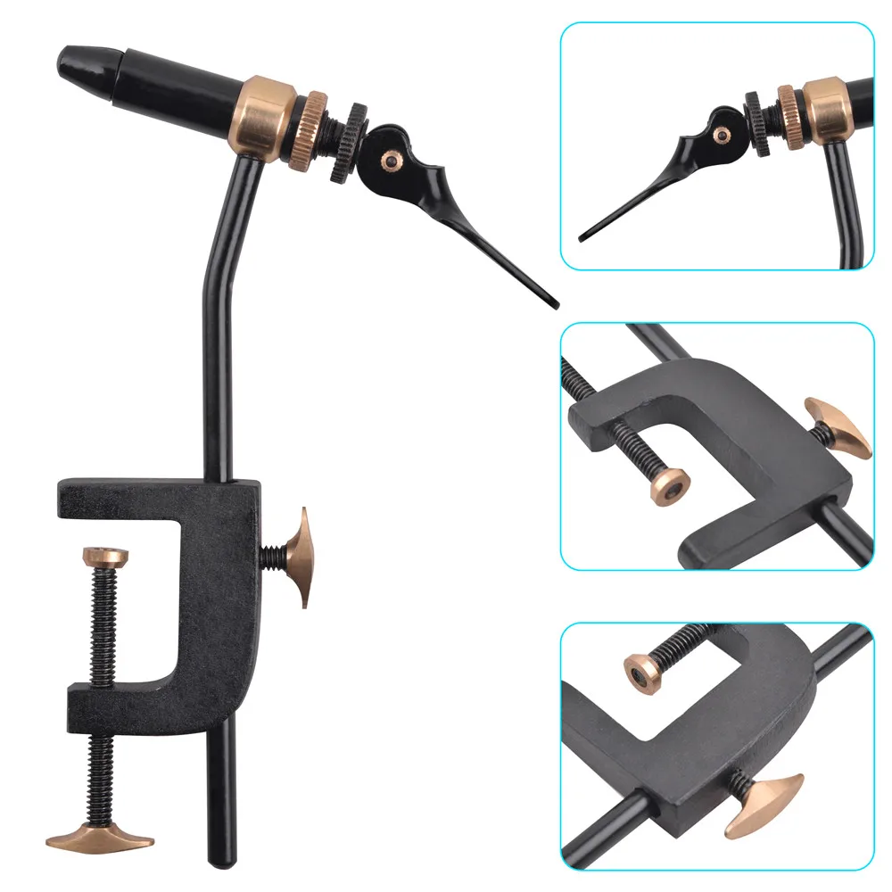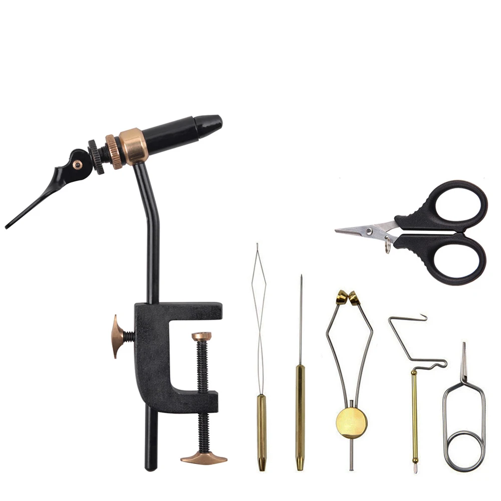 Kit de tornillo de banco giratorio para atar moscas con soporte de bobina, enhebrador, limpiador, alicates Bodkin Hackle para cebo Jig, accesorios de gancho volador