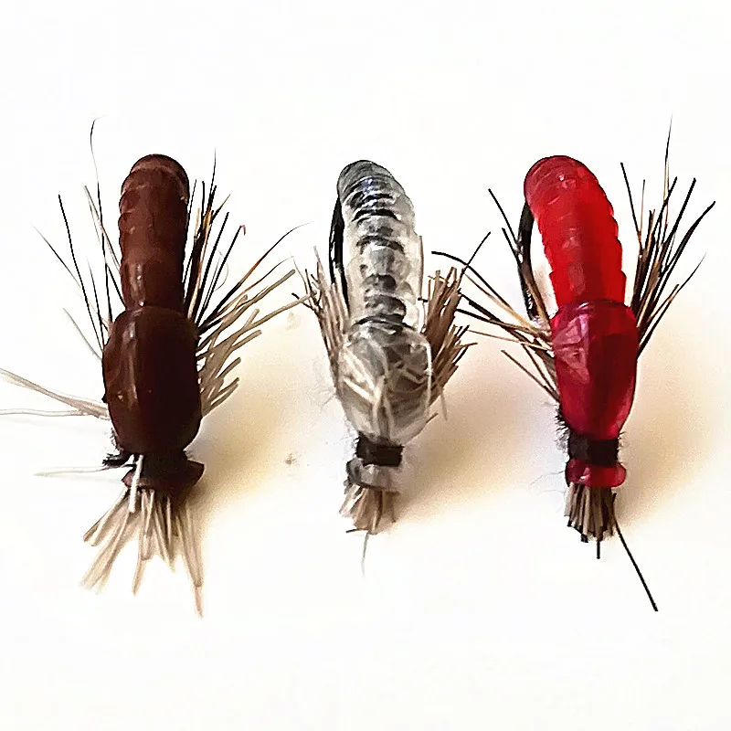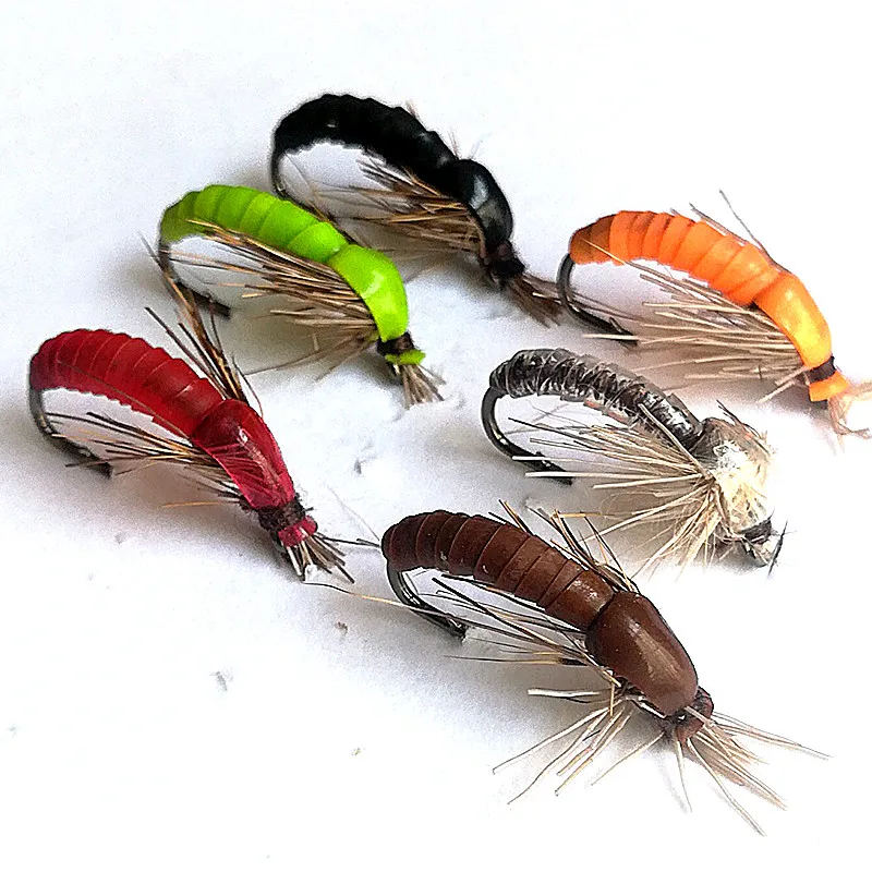18 piezas de Material de silicona de Color que se hunde Ninfa Scud Fly Bug Worm Trout pesca moscas insectos artificiales cebo de pesca señuelo