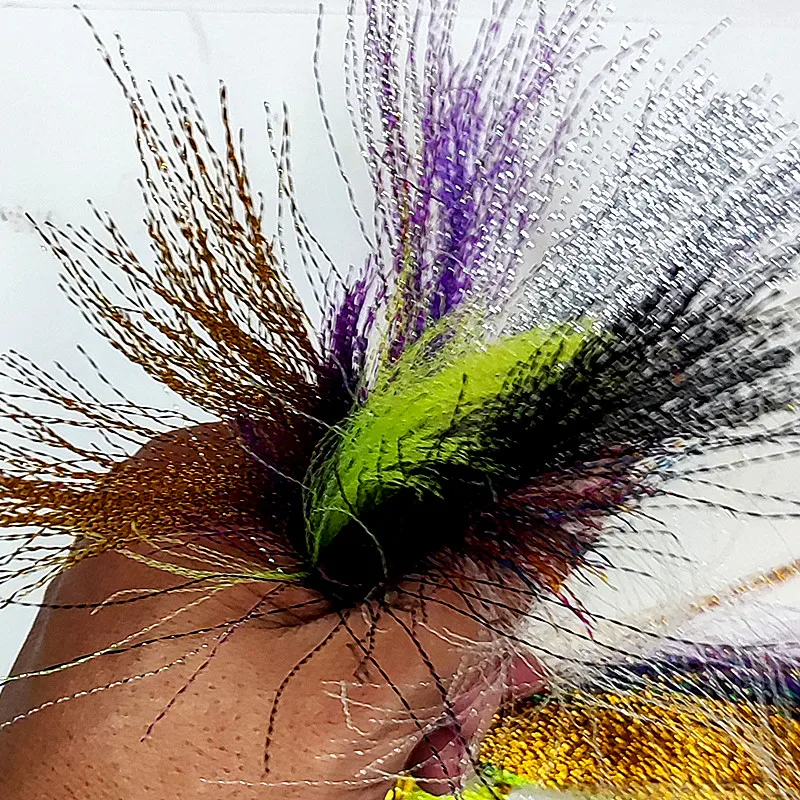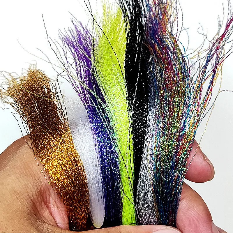 KKWEZVA-Paquete de 2 tachuelas giratorias de cristal fluorescente brillante, Flashabou Krystal, oropel, Material de atado de moscas, plantilla de agua salada
