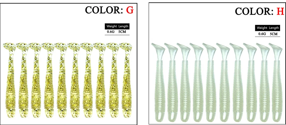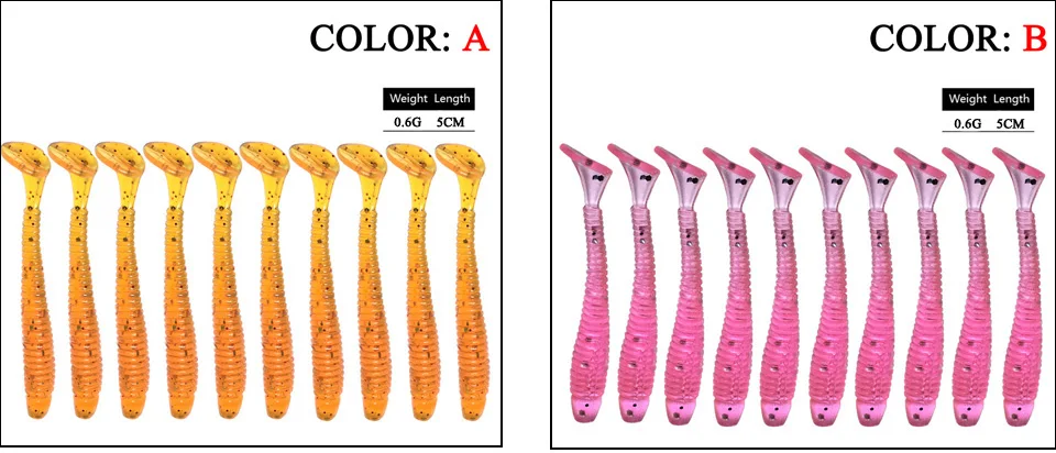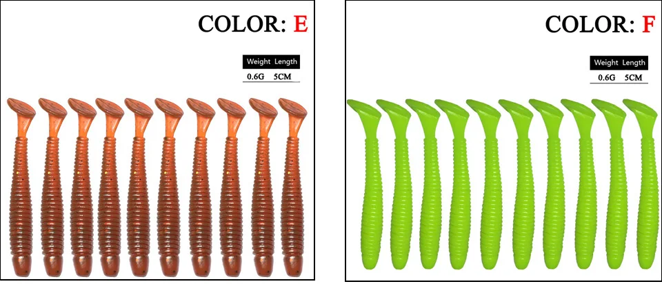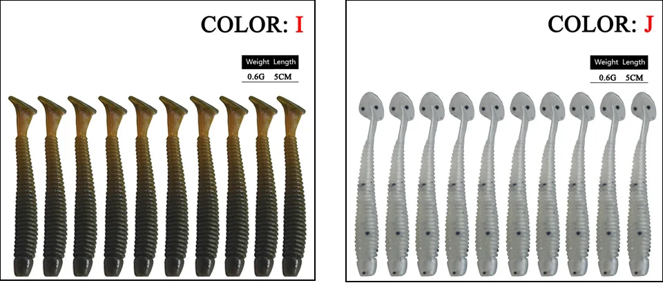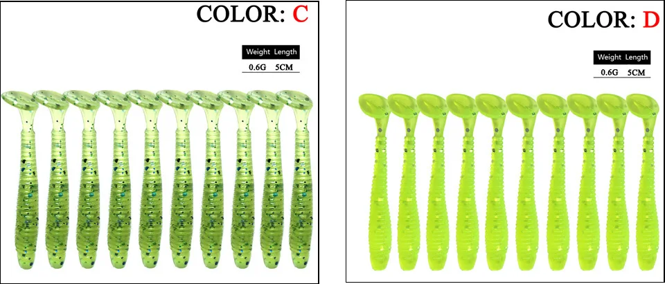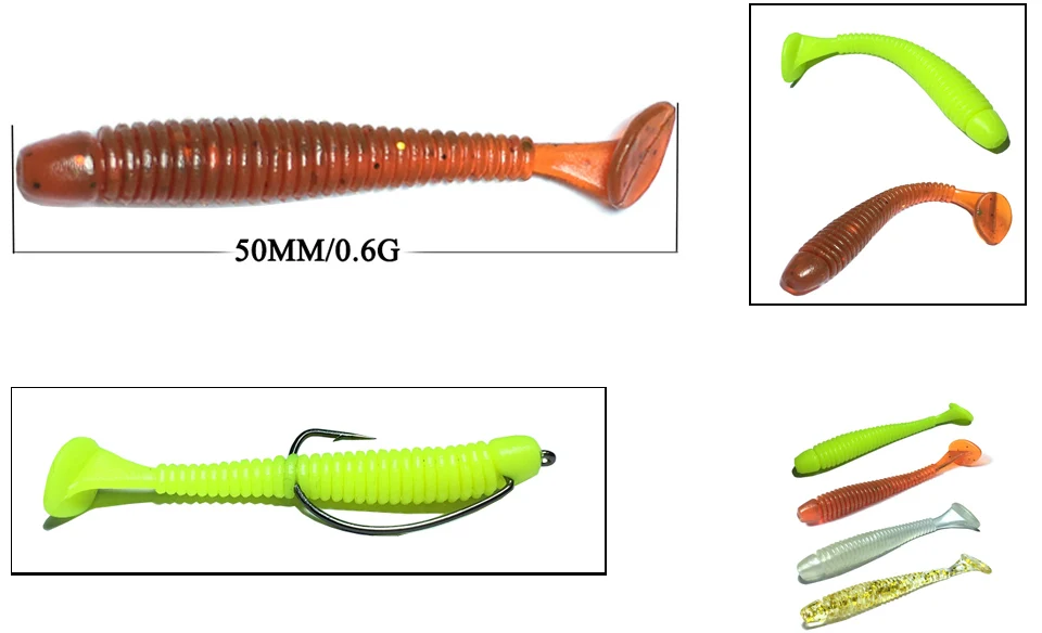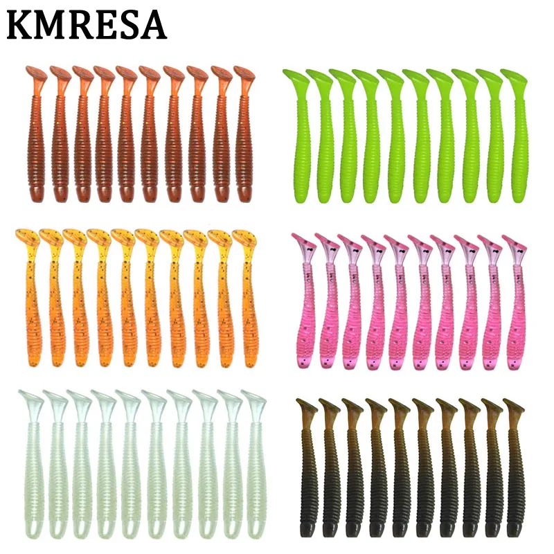 KMRESA-señuelo de gusano de cola en T, cebo Artificial de silicona, Wobber Jigging, Shad Iscas Leurre souple, 5cm, 0,7g, 50 unidades por lote