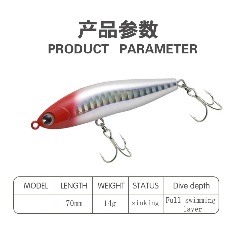 KMRESA-SEÑUELOS Jerkbait de pesca, Wobblers de 14g/70mm, lápiz que se hunde completamente, capa de natación, cebo duro Artificial