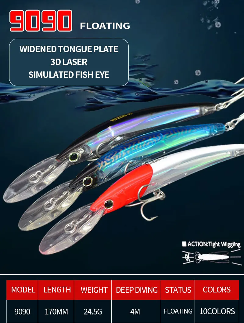 KNCONAN-señuelo de pececillo flotante largo, cebo Artificial Wobbler para lubina, Lucio, Swimbait, suministros de pesca, aparejos, 170mm, 24,5g