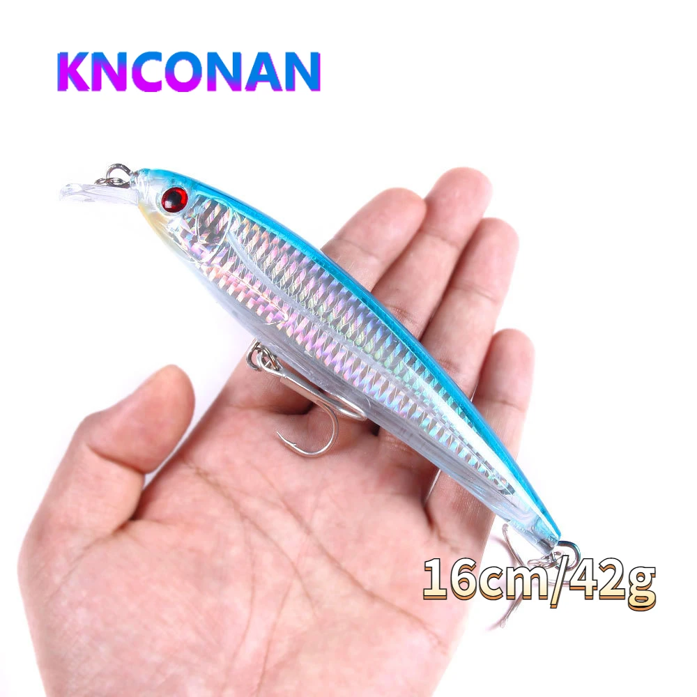 KNCONAN-señuelo de Pesca Minnow, 16CM, 42G, Wobblers, ojos 3D, perca, cebo Artificial, Lucio, carpa, lubina, Pesca con 2 # Ganchos