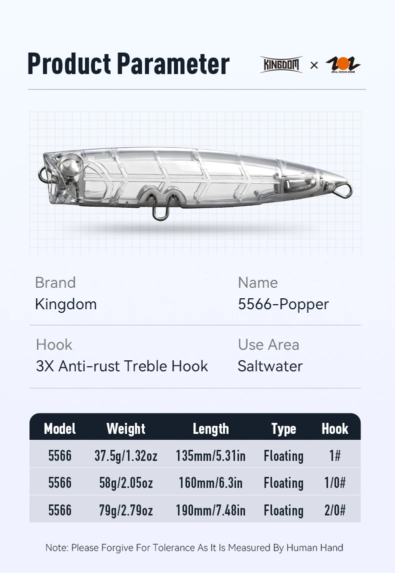 Kingdom Popper Vissen Lokken 37,5g 58g 79g Zoutwater Kunstaas Topwater Wobblers Trolling Popper Jerkbait Voor basvissen