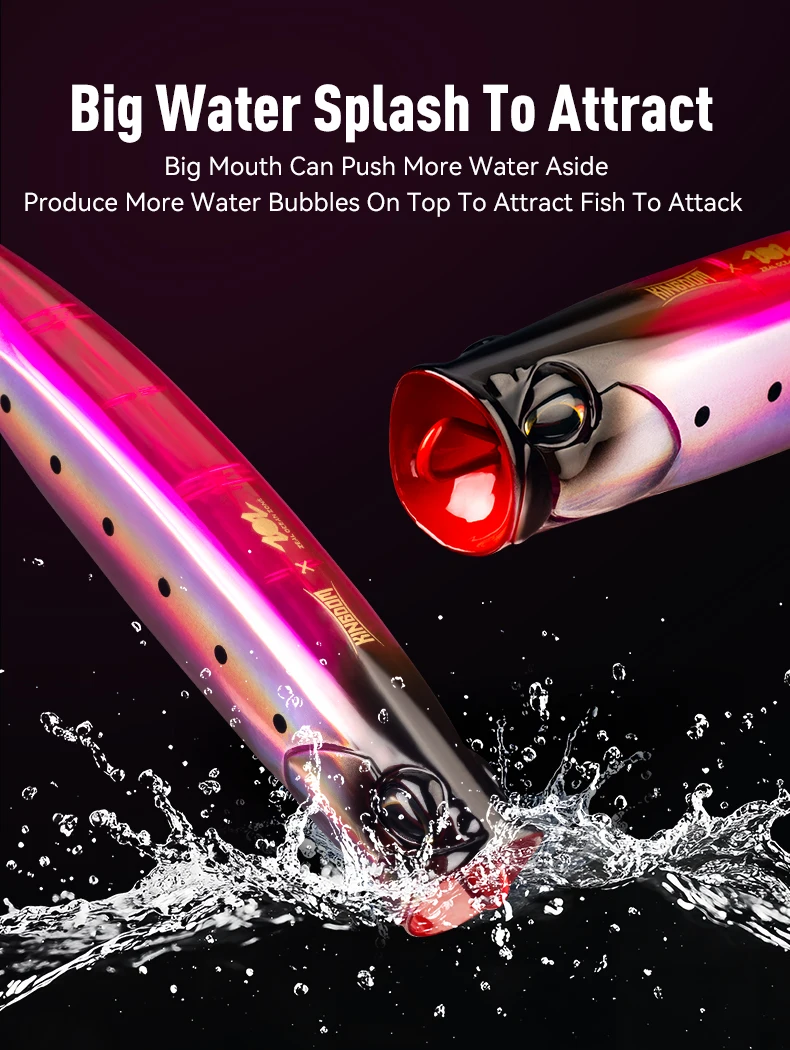 -De Big Mouth Popper blinkt uit in de vroege ochtend, in de schemering of opgenomen dagen wanneer vissen zich dichtbij het oppervlak voeden. De agressieve actie veroorzaakt reactieslagen, waardoor het een favoriet is onder vissers.