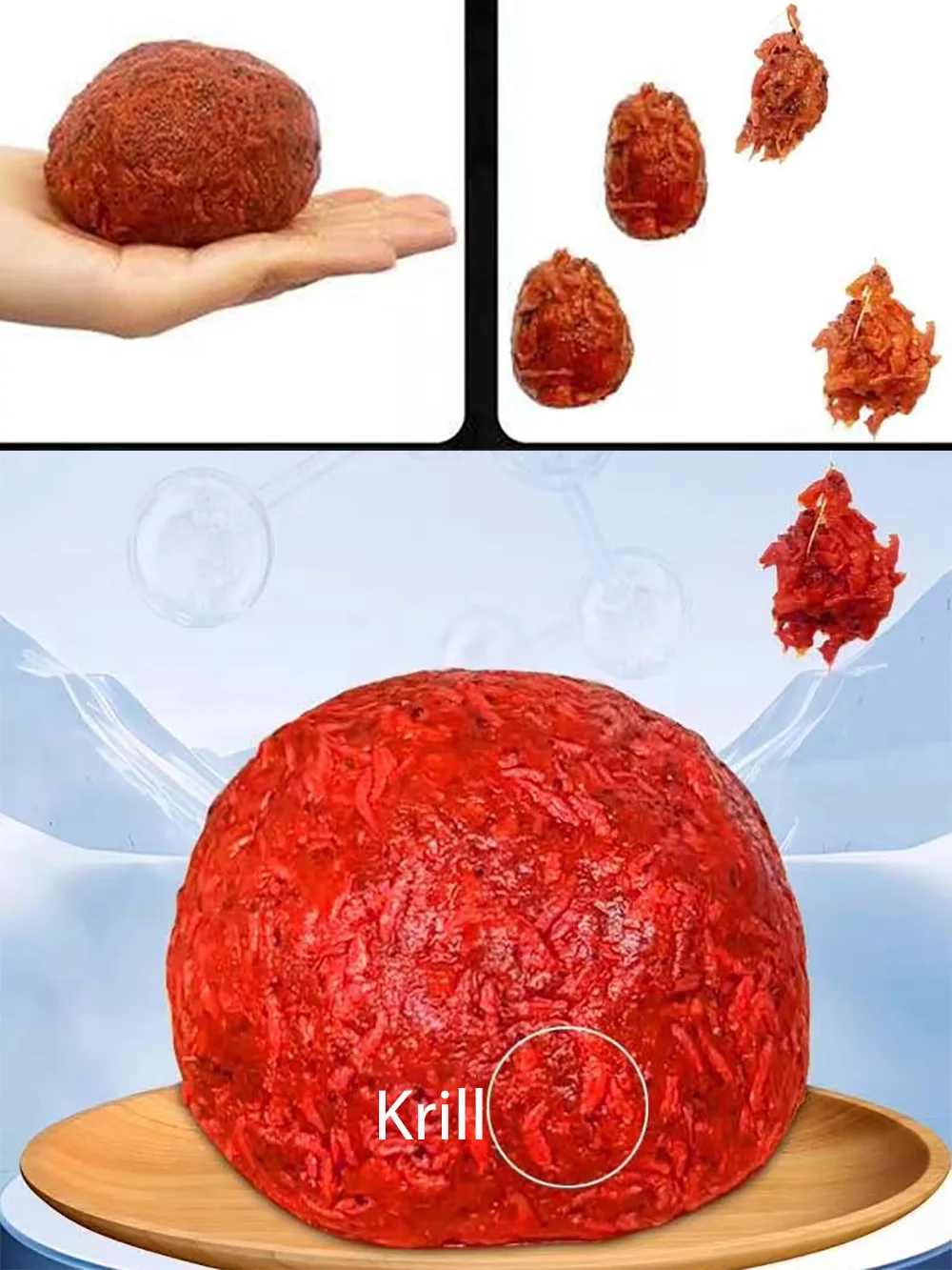 Hechos de krill antarcótico, son ricos en aminoácidos proteicos tanto para el mar como para el agua dulce.