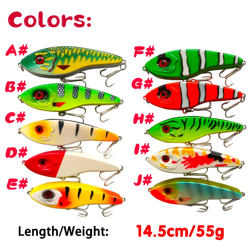 Kunlang 1Pcs JerkBait Pike Bass Fishing lure Tackle Big VIB 14.5cm 55g Slow Sinking Artificial Hard Bait Rattle Accessories Bass