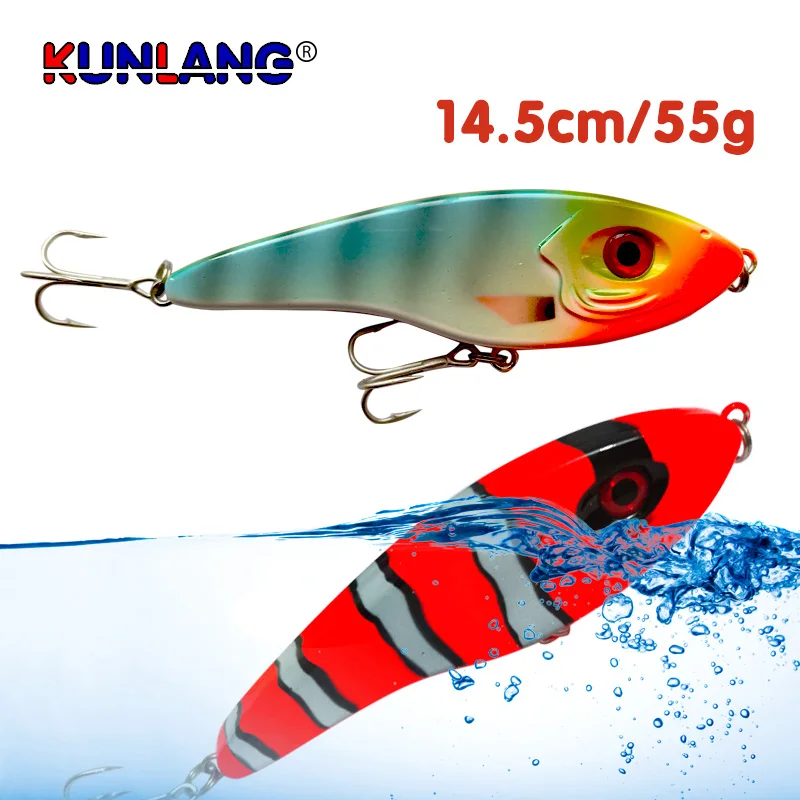 Kunlang 1Pcs JerkBait Pike Bass Fishing lure Tackle Big VIB 14.5cm 55g Slow Sinking Artificial Hard Bait Rattle Accessories Bass