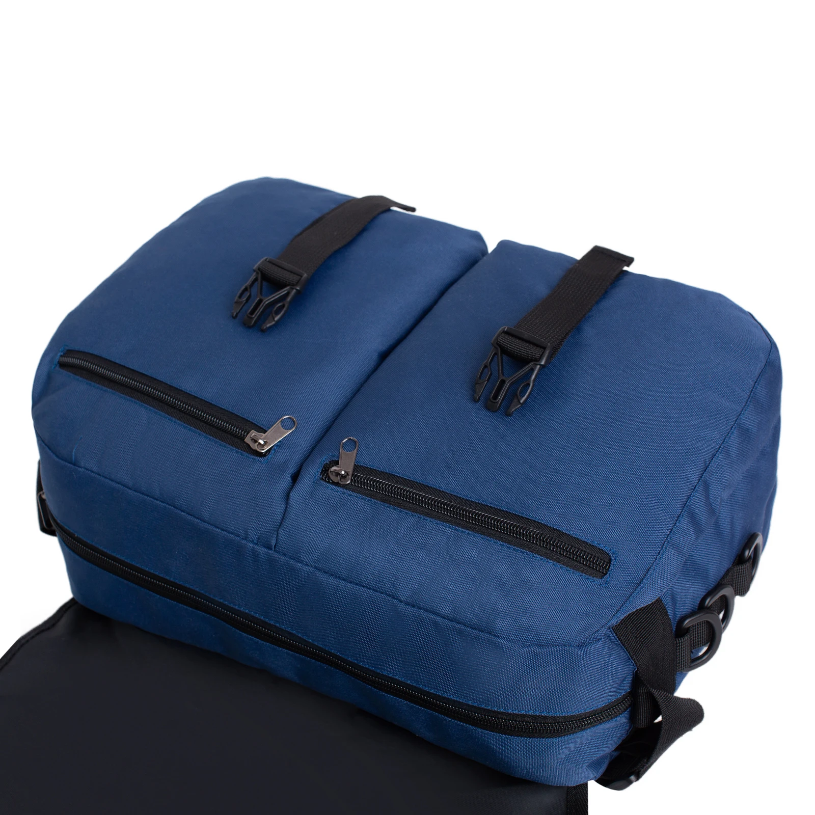 -La solapa grande cubre todas las aberturas de los bolsillos y se sujeta con clips de plástico de liberación rápida.