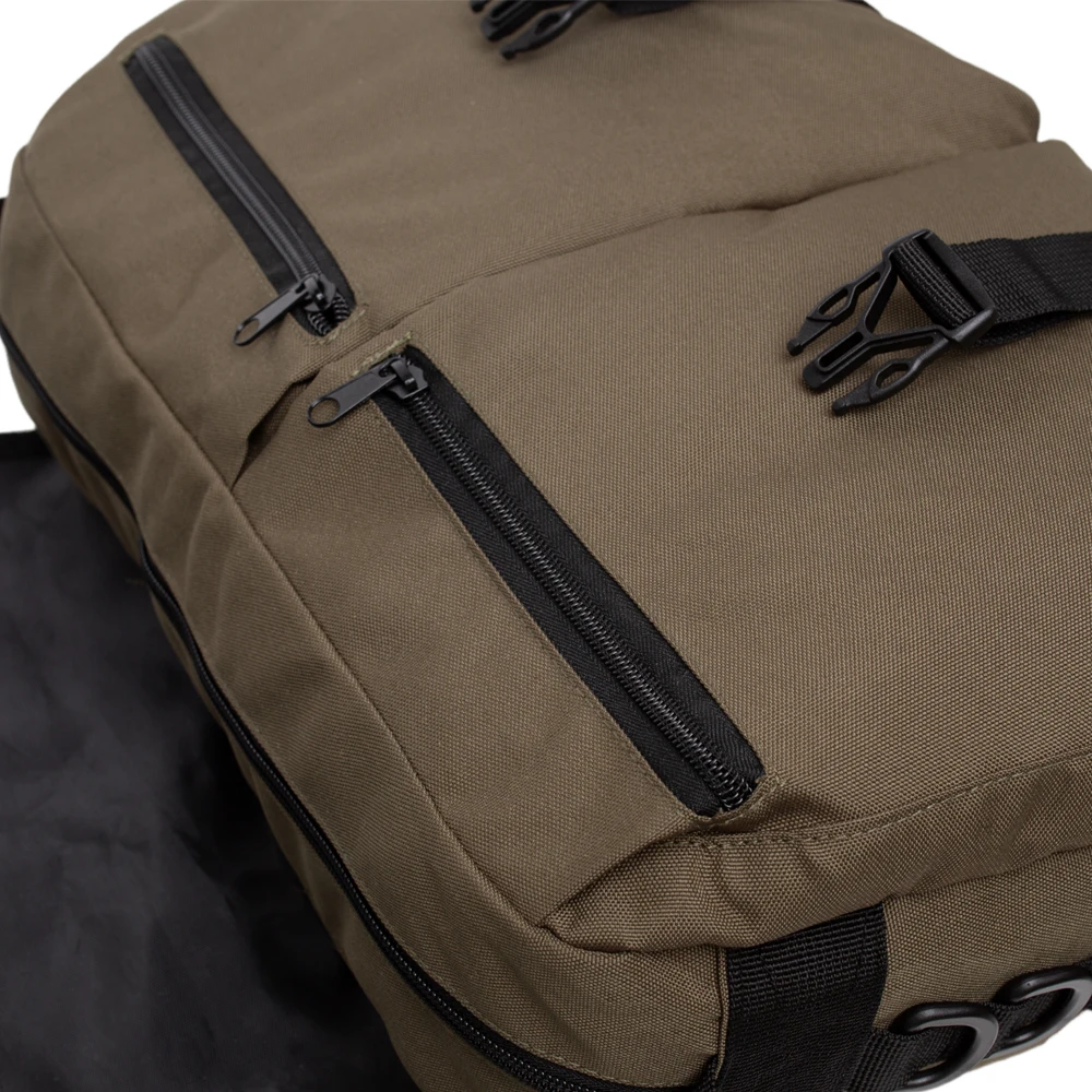 -La solapa grande cubre todas las aberturas de los bolsillos y se sujeta con clips de plástico de liberación rápida.