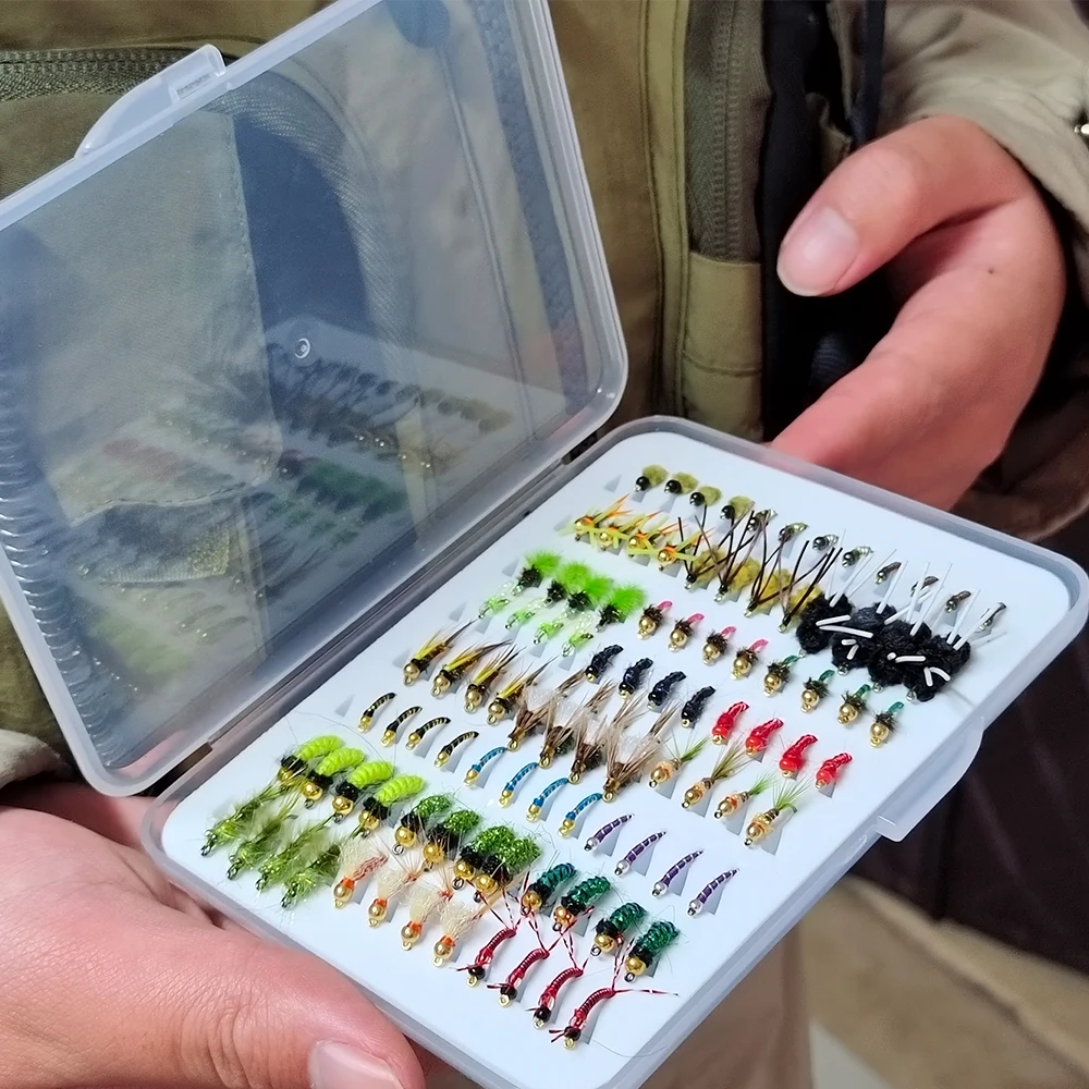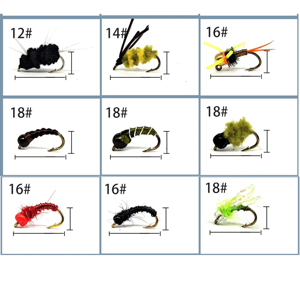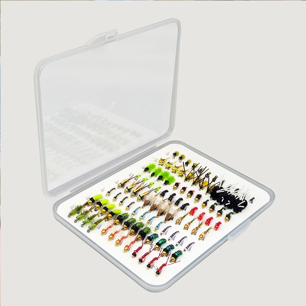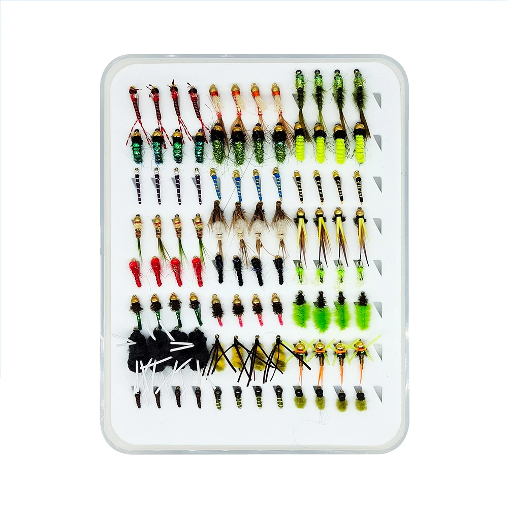 ◆El surtido de moscas incluye ninfas versátiles, de uso frecuente y de hundimiento rápido y moscas de gusano Scud.