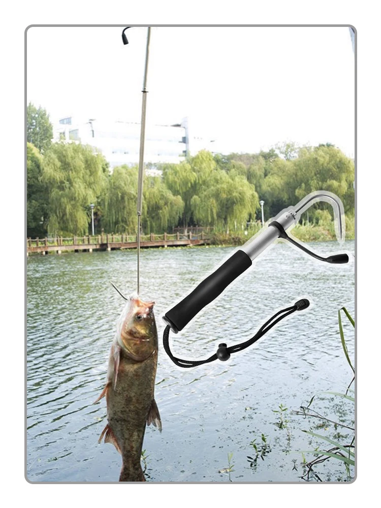 Estiramiento a una longitud adecuada, inserte directamente la punta del anzuelo en el cuerpo del pez o en la boca del pez y levante el pez fuera del agua.