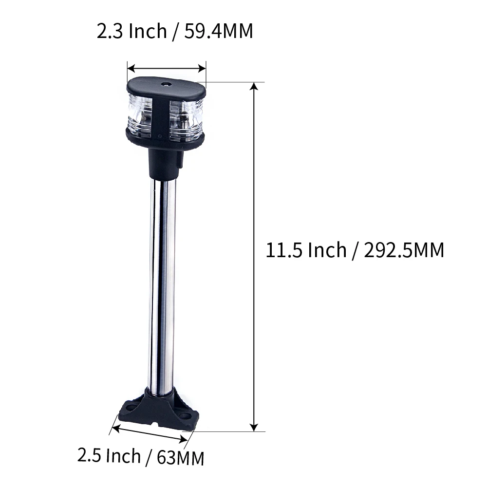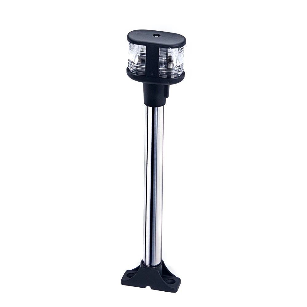 Lámpara de mástil de anclaje de popa, Bombilla de festón de 11 1/2 pulgadas, redonda y con cabezal de luz, varilla de acero inoxidable ANHEART MARINE