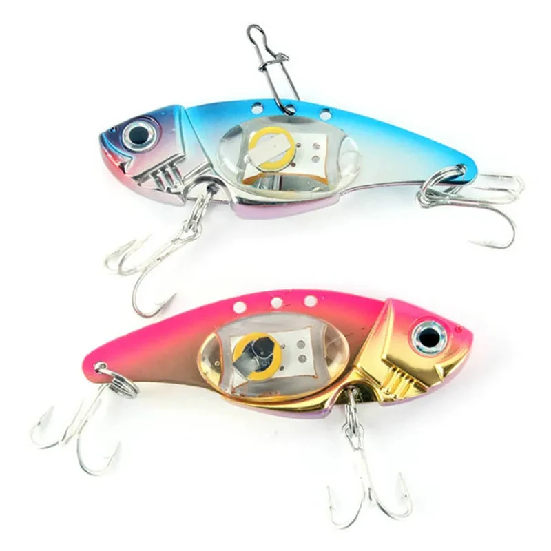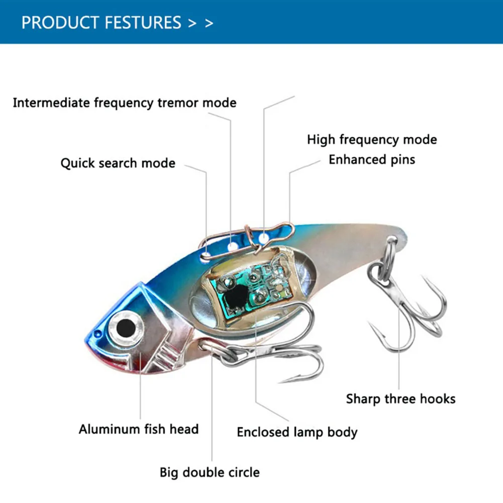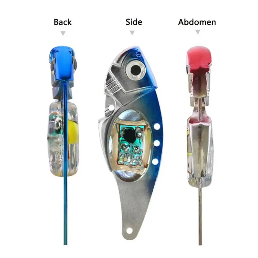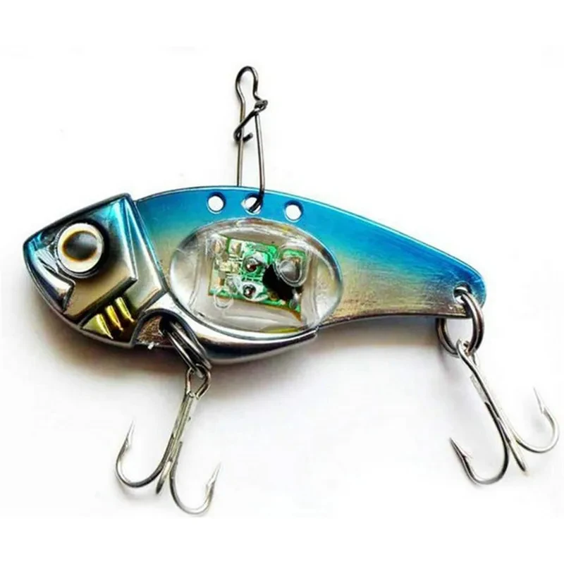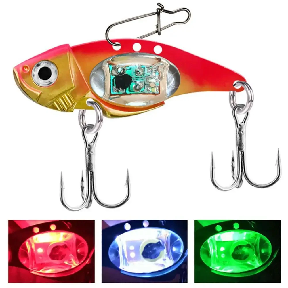 Lámpara de pesca electrónica, aparejos de cebo, luz LED, señuelo de pesca, anzuelo triple, señuelo de pez, lámpara intermitente (rojo, azul)