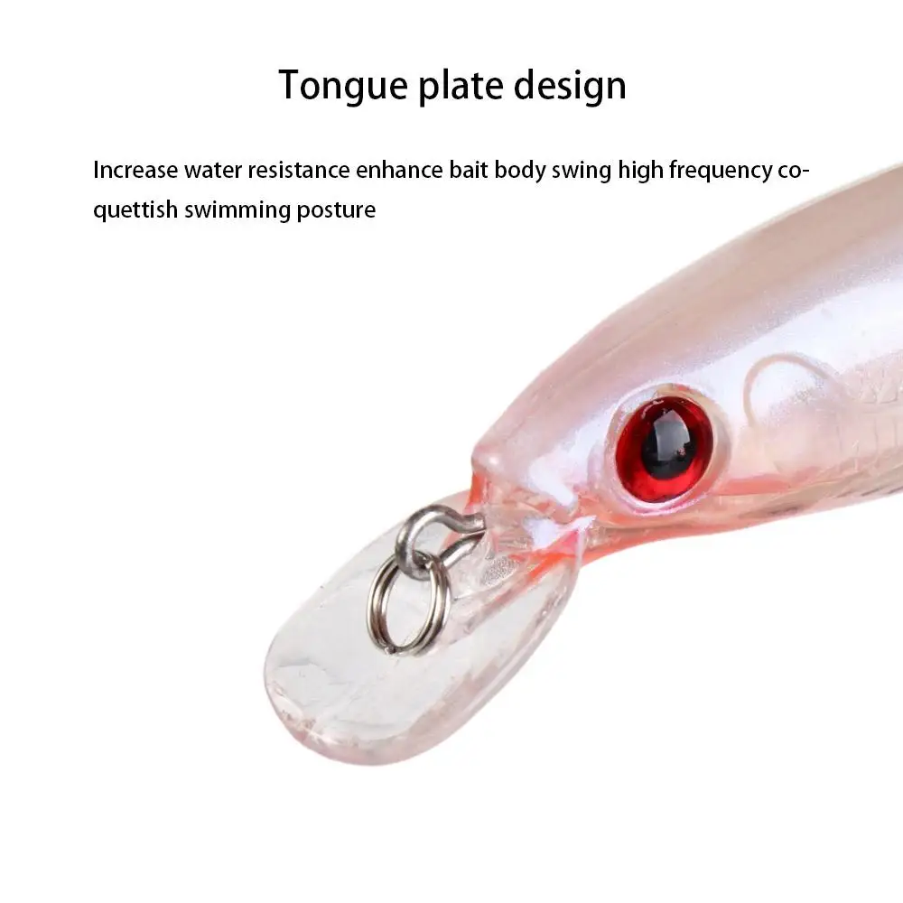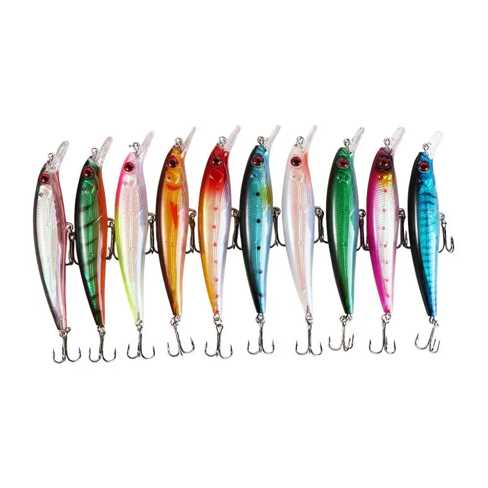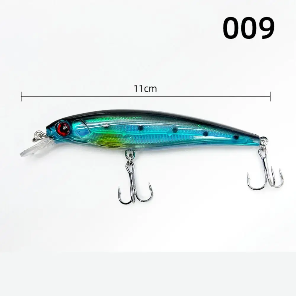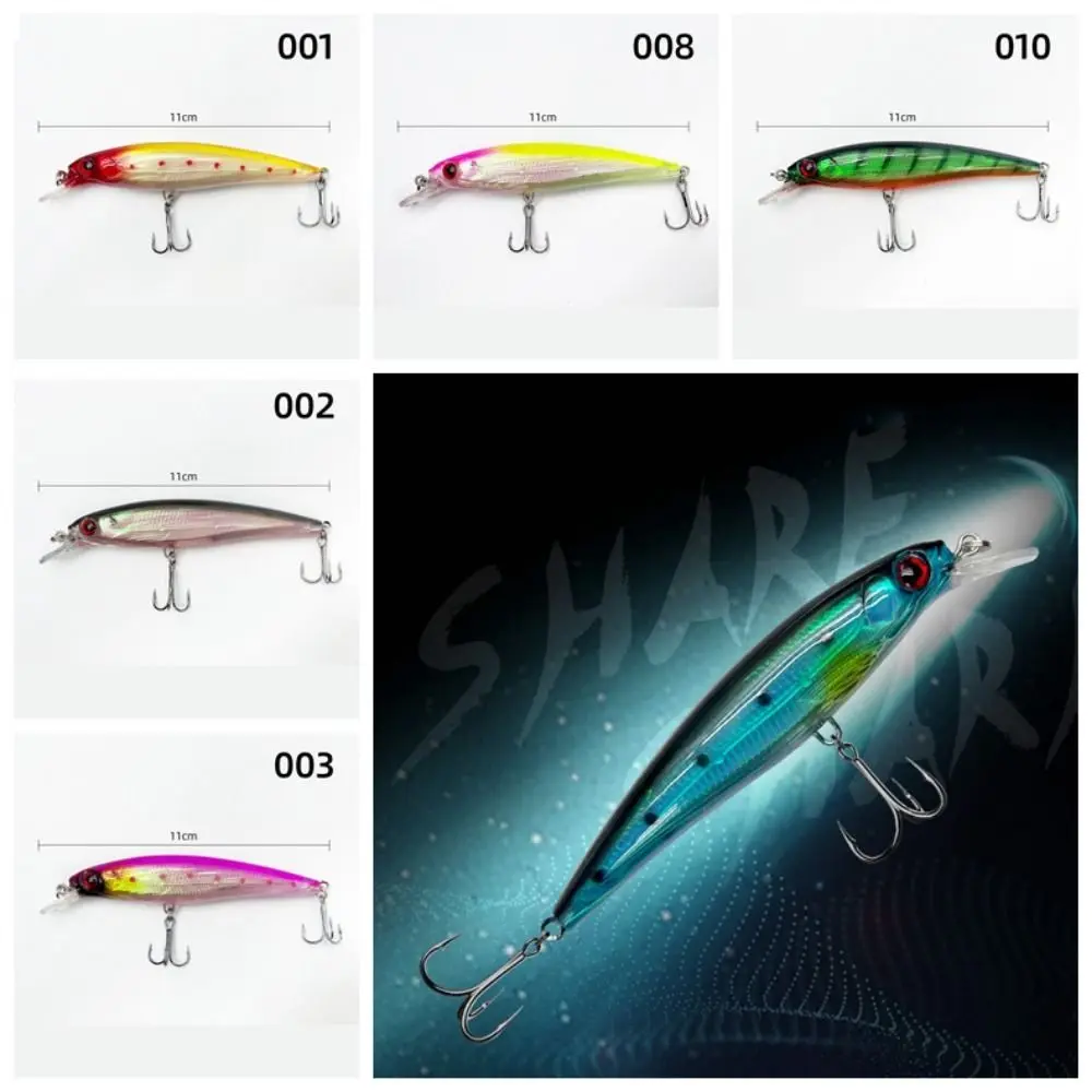 Tipo: cebo artificial. Categoría: señuelo. Color: 10 colores disponibles. Tamaño: 11cm (4,33 pulgadas). Peso: 13,5g/Pieza. El paquete incluye: 1 cebo. Las mediciones se realizaron a mano, por lo que puede haber errores dentro de 1-3mm (0,04-0,12 pulgadas) o 1g. 2. Factores como la iluminación, el contraste y la pantalla a color pueden hacer que las fotos se vean ligeramente diferentes, esto no es indicativo de ningún problema de calidad del producto. 3. El tamaño se basa en las medidas reales. Las imágenes solo podemos ampliar para mostrar mejor los detalles.