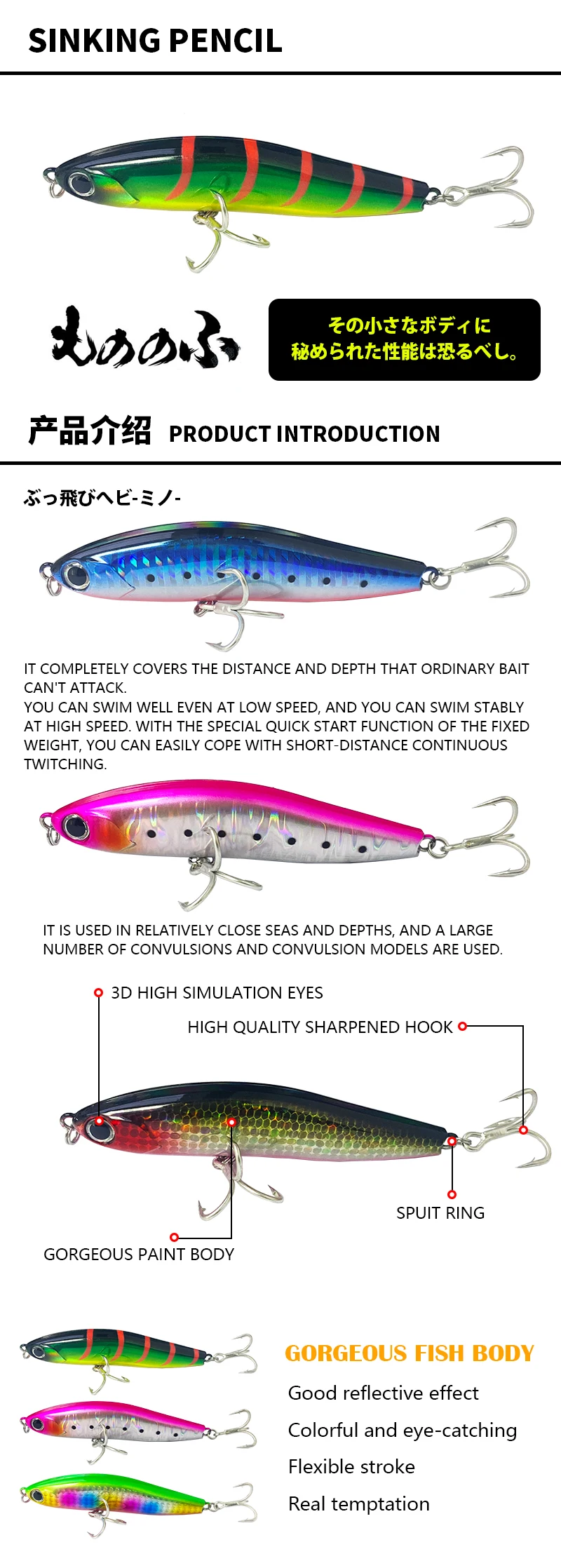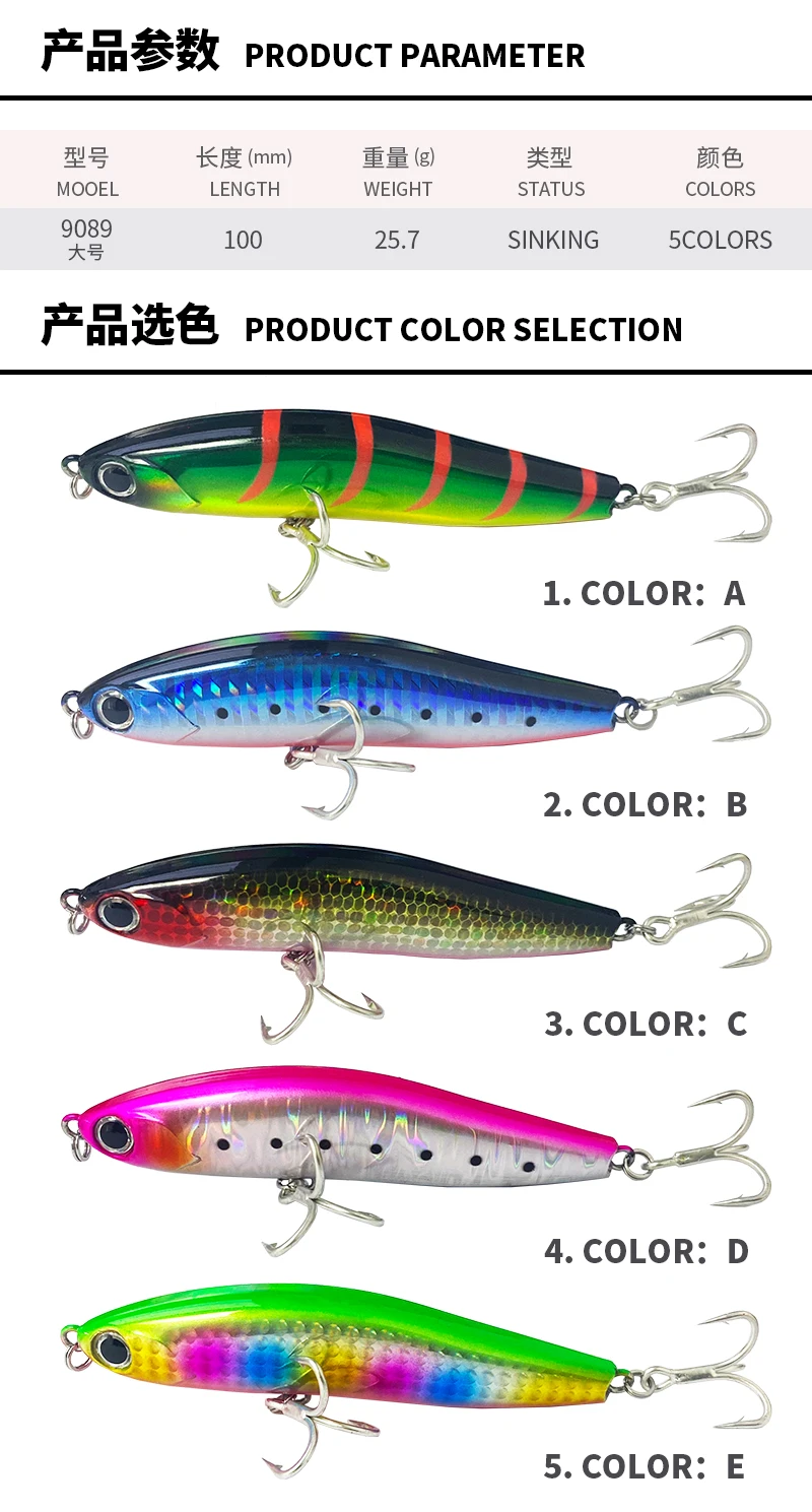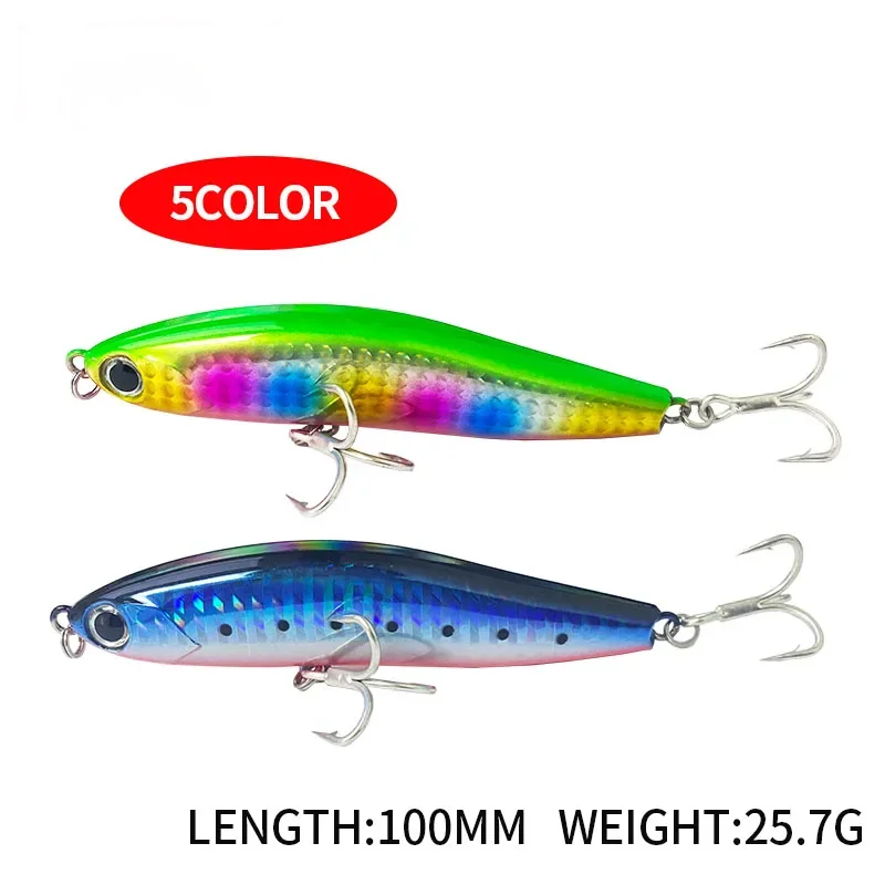 Cebo Sumergido para Corredor de Carretera, Cebo Falso de Raya Blanca, Fundición Larga, Agudos, 100mm, 25g, 7g
