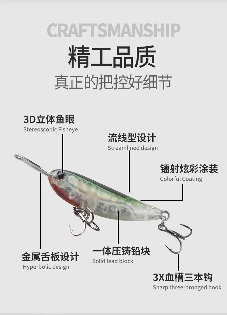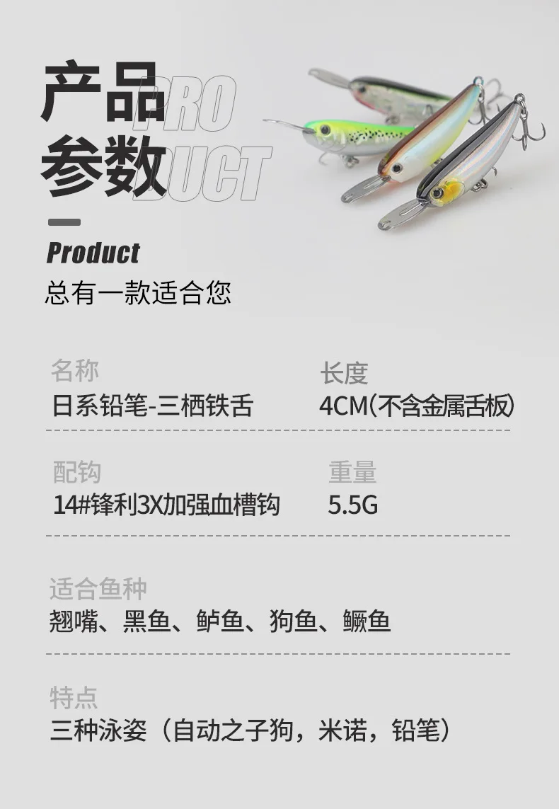 Lápiz de pececillo que se hunde Wobbler, 4cm, 5,5g, labio de Metal, Wobbler, trucha, agua salada, cebo duro Artificial, aparejos de pesca
