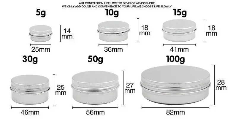Latas de 100 g (3,5 oz) que son perfectas para guardar diversos artículos, como lociones, barbas y bálsamos labiales, etc.