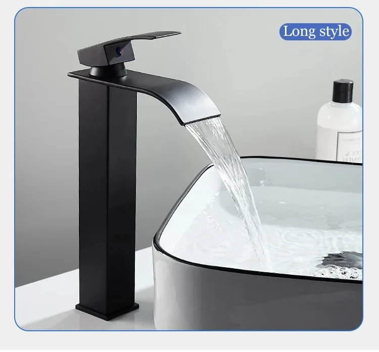 Lavabo en cascada, grifo alto y bajo de acero inoxidable, lavabo negro para inodoro frío y caliente, baño y hogar