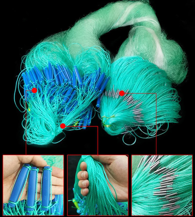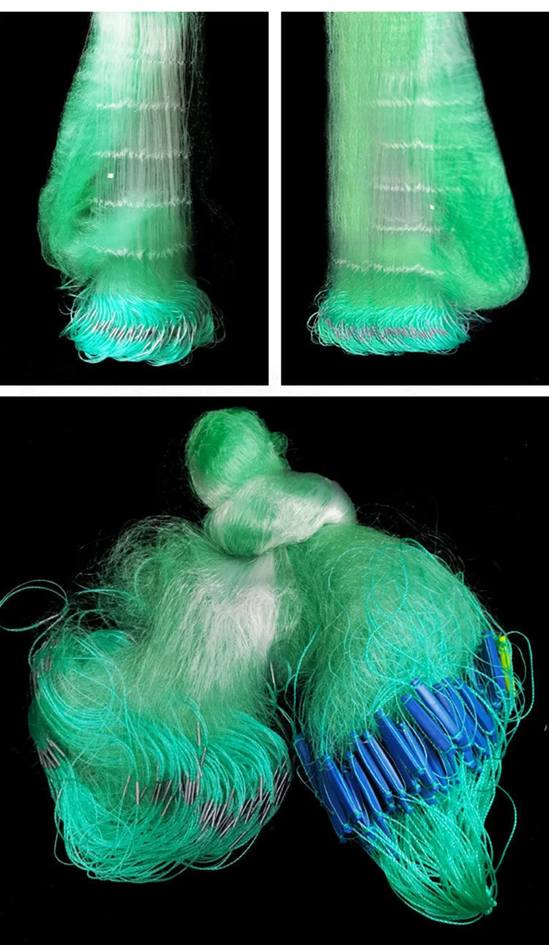 Malla flotante lavaia 40M a prueba de explosiones, red de pesca de tres capas que se hunde, red para colgar, red adhesiva de seda verde