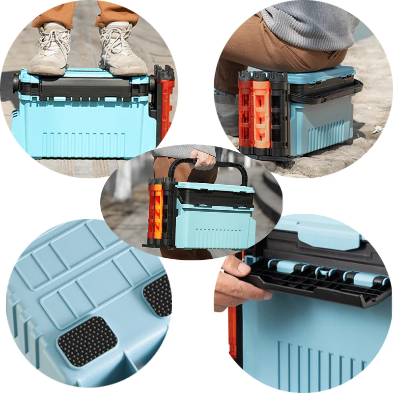 Lawaia-cajas de aparejos de pesca de doble capa, caja de aparejos multifunción para pesca, dispositivo de inserción de caña impermeable