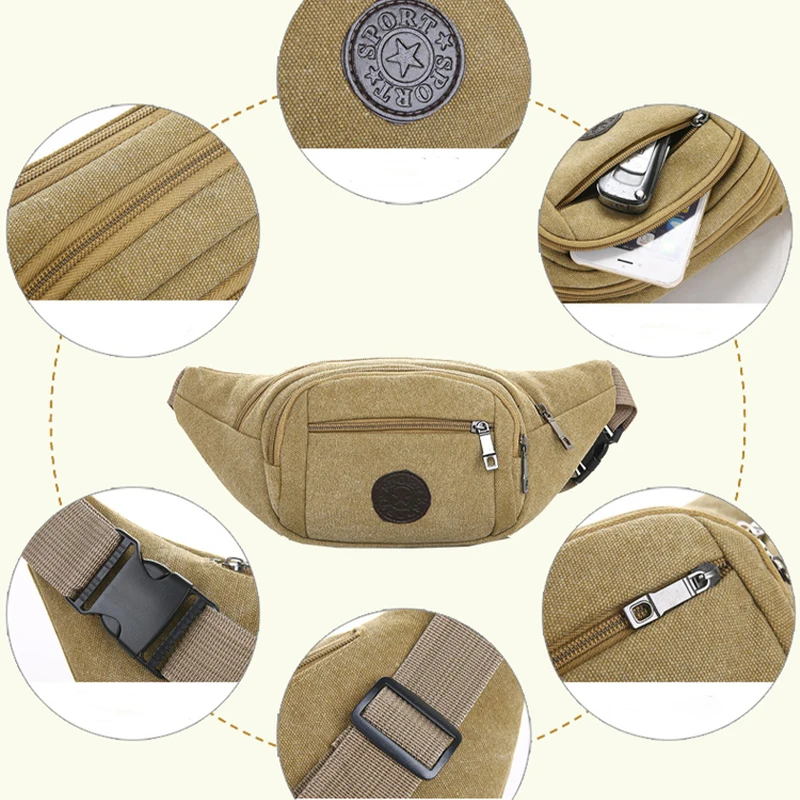 Lawaia Canvas Fanny Pack Paquete de cajero multifuncional unisex Mochila pequeña para deportes al aire libre