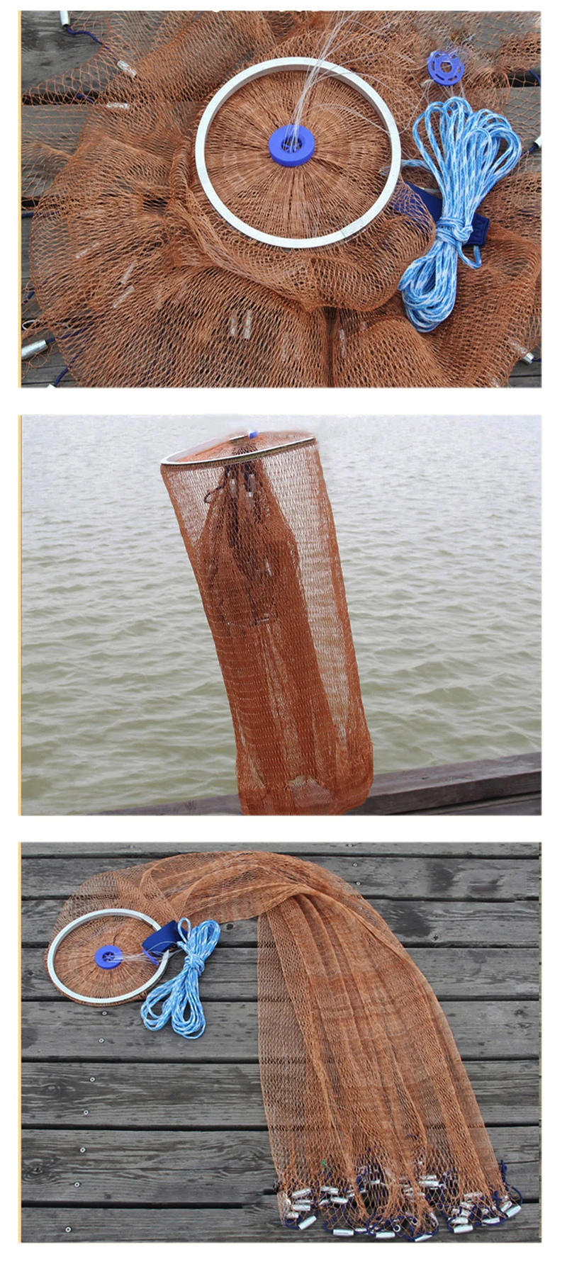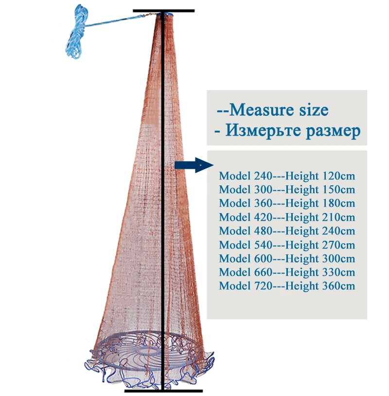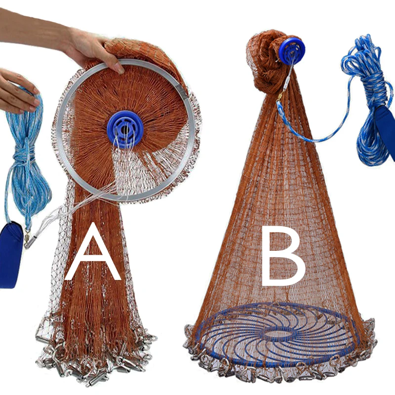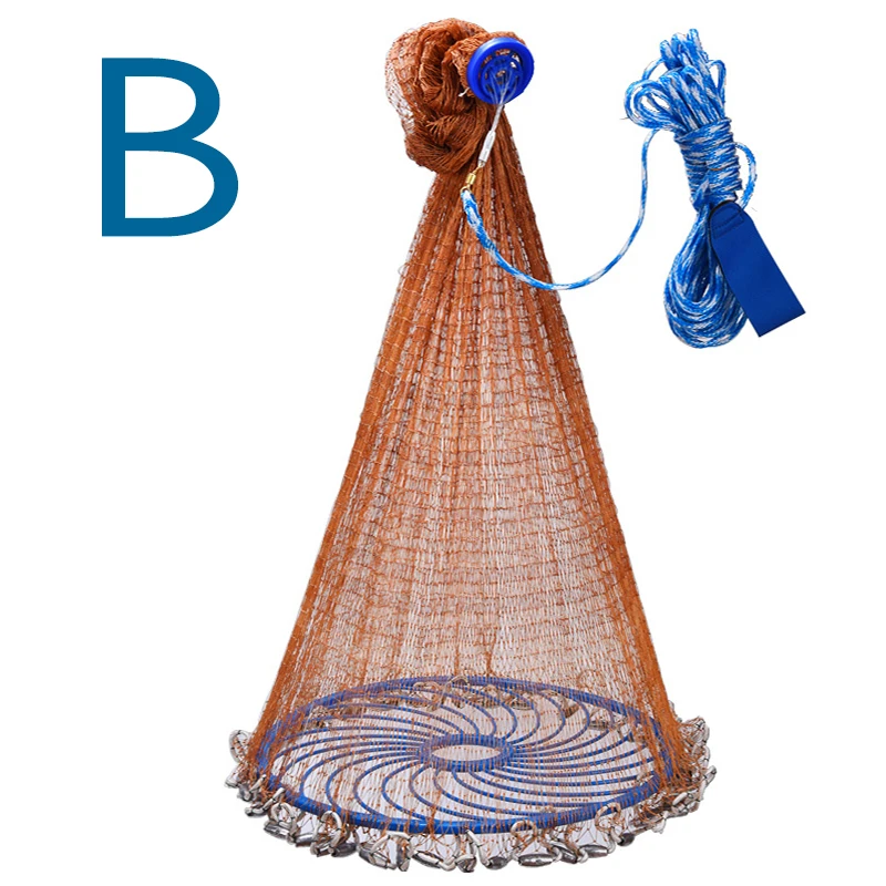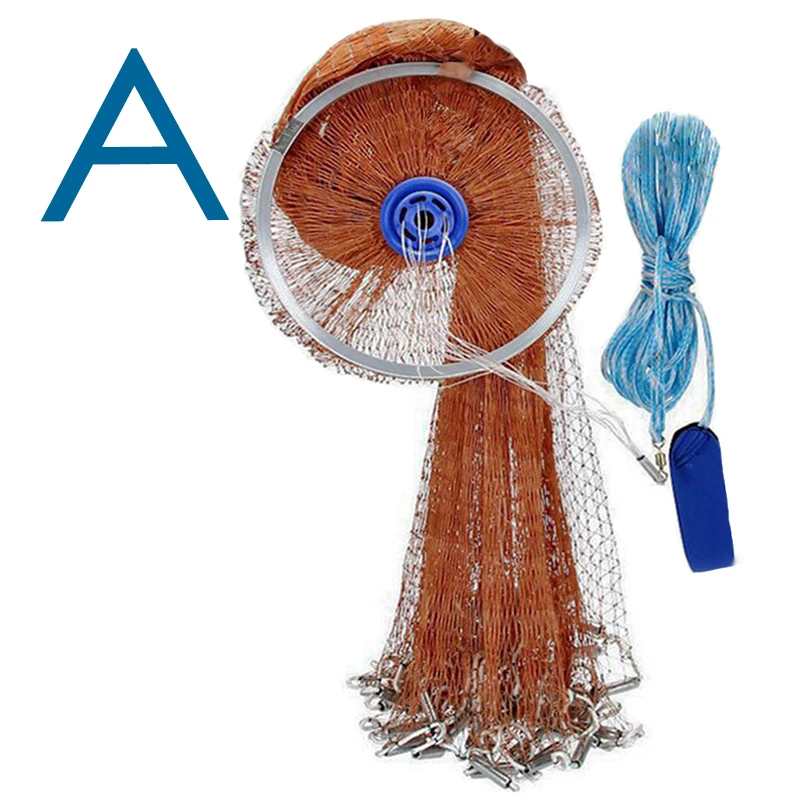 Lawaia Cast Net Estilo americano Cable trenzado fuerte Lanzamiento de mano Red de pesca Anillo de aluminio o Red de fundición de anillo azul