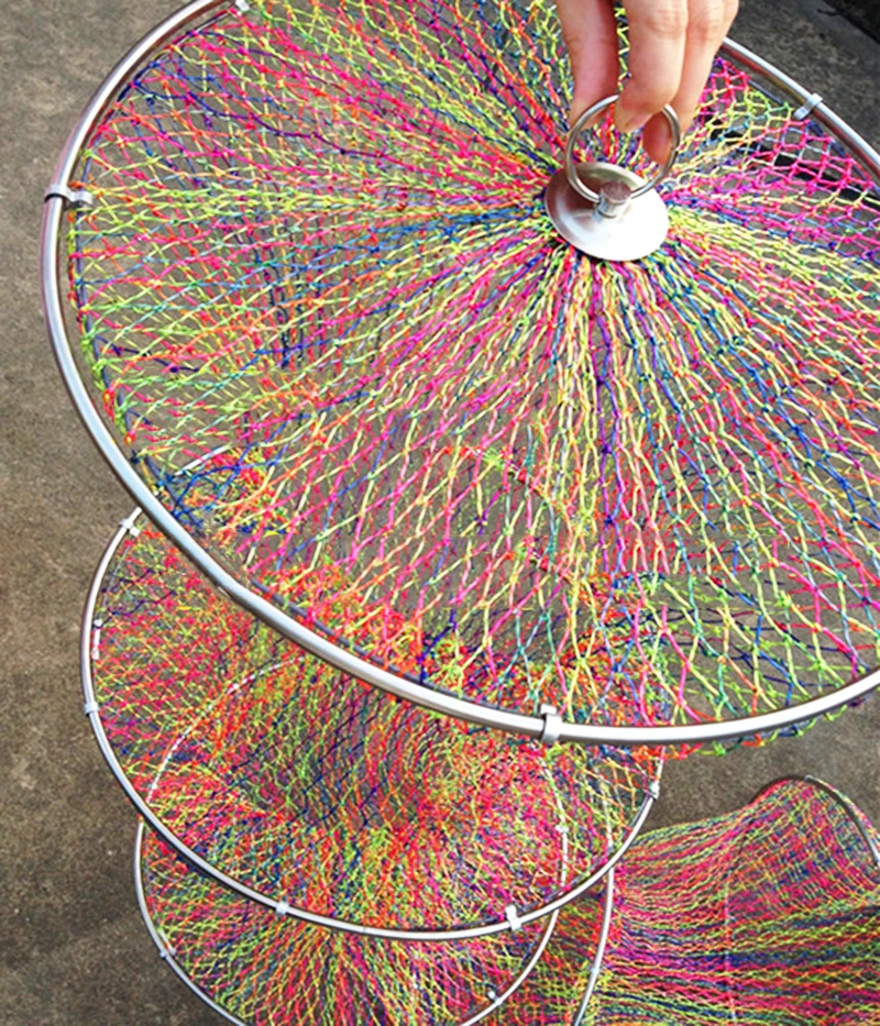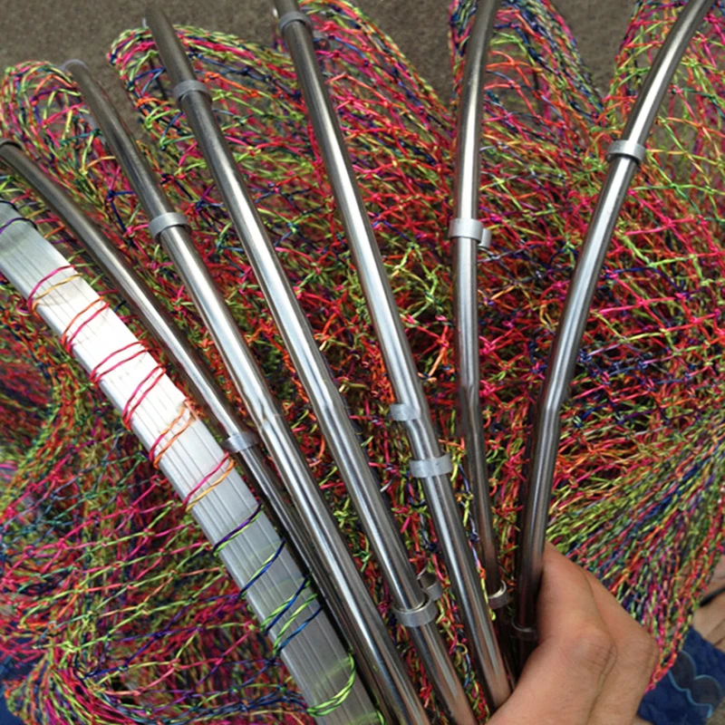Jaula de pesca tejida a mano Lawaia, líneas de nailon multifilamento, cesta de pescado, anillo de red de acero inoxidable fuerte, accesorios de pesca plegables