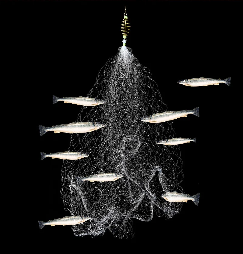 Lawaia Red adhesiva de pesca con cuentas luminosas nocturnas, anillo de rodamiento de bolas, conector de red de enmalle fundido, herramientas de trampa de agua dulce, aparejos