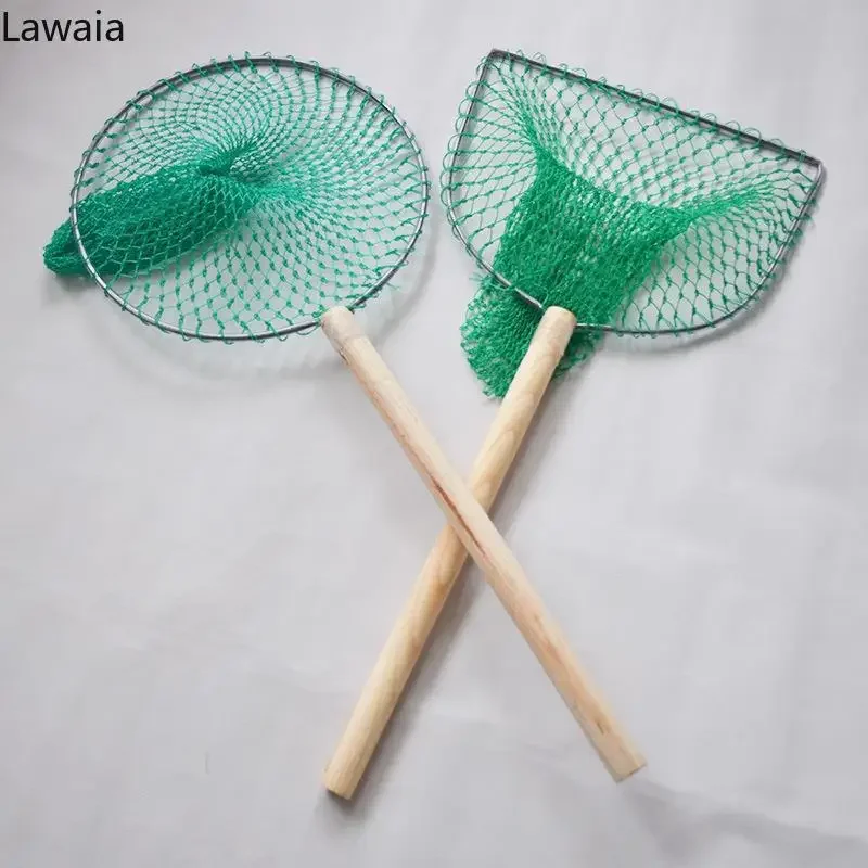 Lawaia Red de aterrizaje de pesca, herramienta de pesca con mosca de nailon, cabeza de red de acero inoxidable, multihilo, 30cm