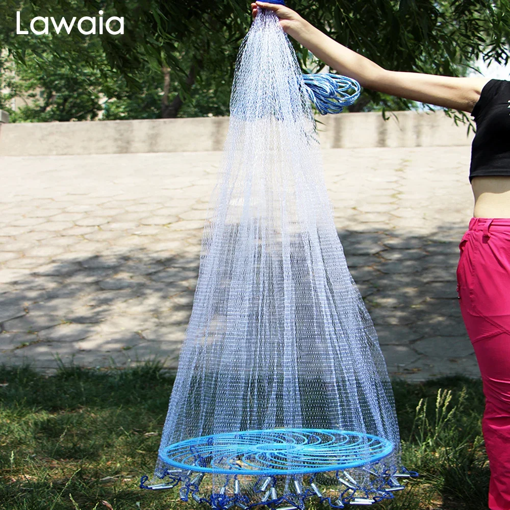 Lawaia Easy Throw Cast Net Herramienta de pesca de estilo americano Monofilamento Cable de nailon Diámetro 180cm-720cm Malla pequeña Red de pesca para exteriores