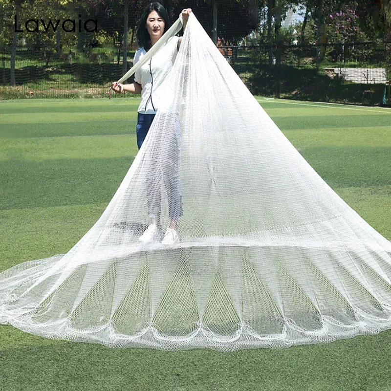 Lawaia, Red de fundición tradicional, hilo de nailon blanco, colgante de acero y hierro, peso, redes de pesca para lanzar a mano, Red de aterrizaje, captura de peces