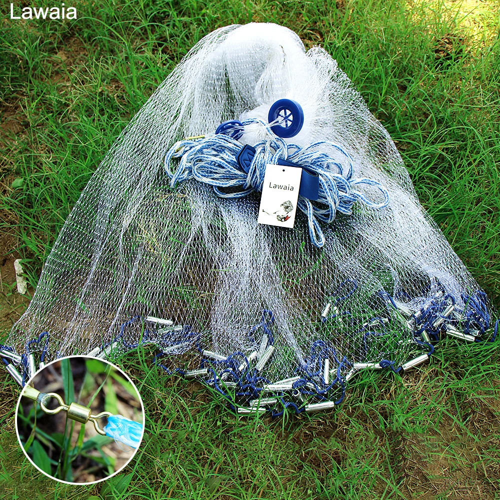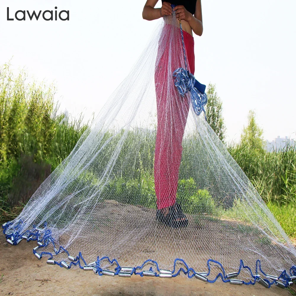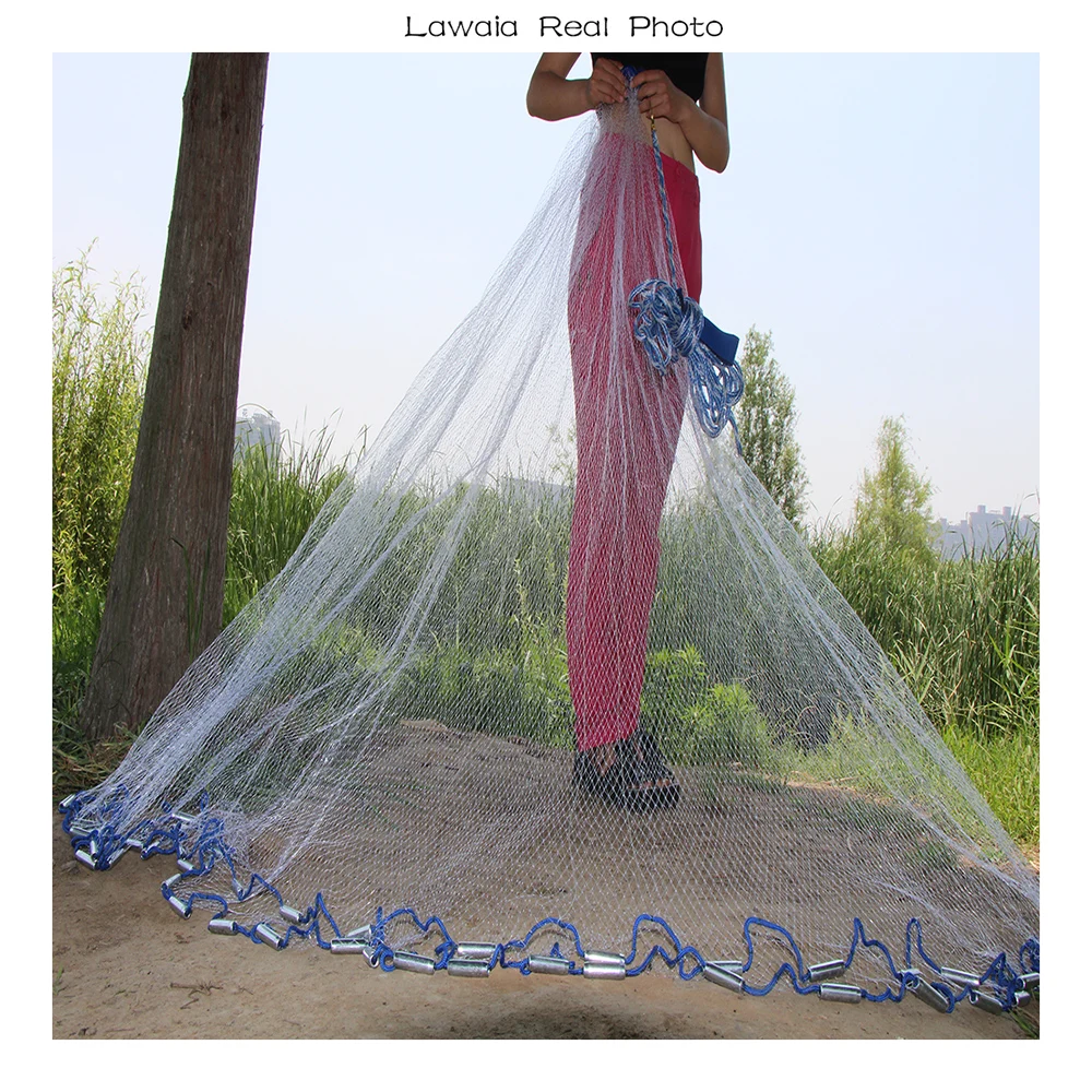 Lawaia Red fundida a mano Monofilamento de estilo americano Red plegable de malla pequeña de nailon con colgantes de acero y hierro